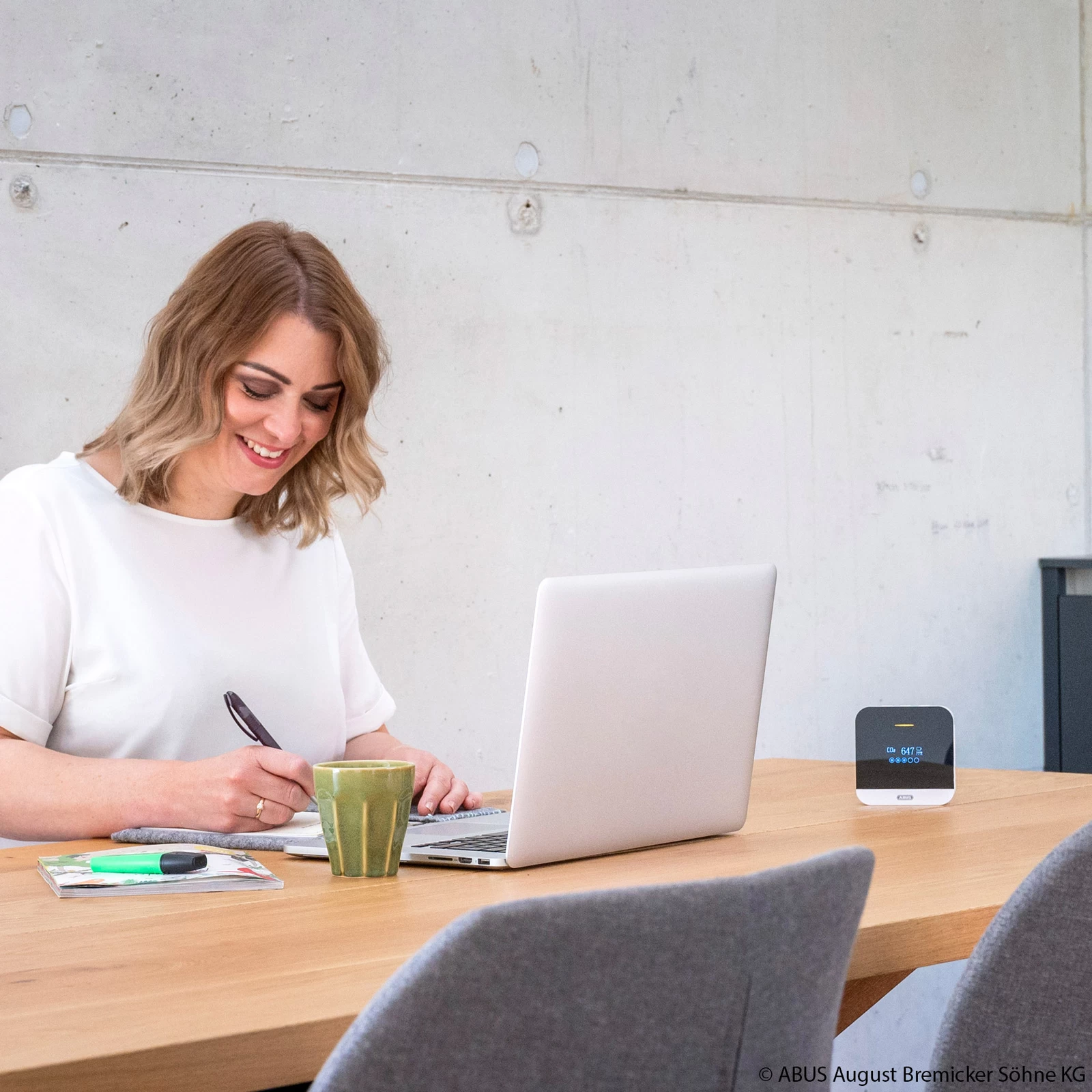 Dårlig luft indendørs på grund af for høj kuldioxidkoncentration kan forårsage hovedpine, kvalme eller en generel følelse af utilpashed. CO2-alarmen måler pålideligt CO2, temperatur og luftfugtighed i rummet og viser den aktuelle luftkvalitet. I tilfælde af øget CO2-koncentration advarer Airsecure med en indikation på displayet og eventuelt med en alarmlyd.
