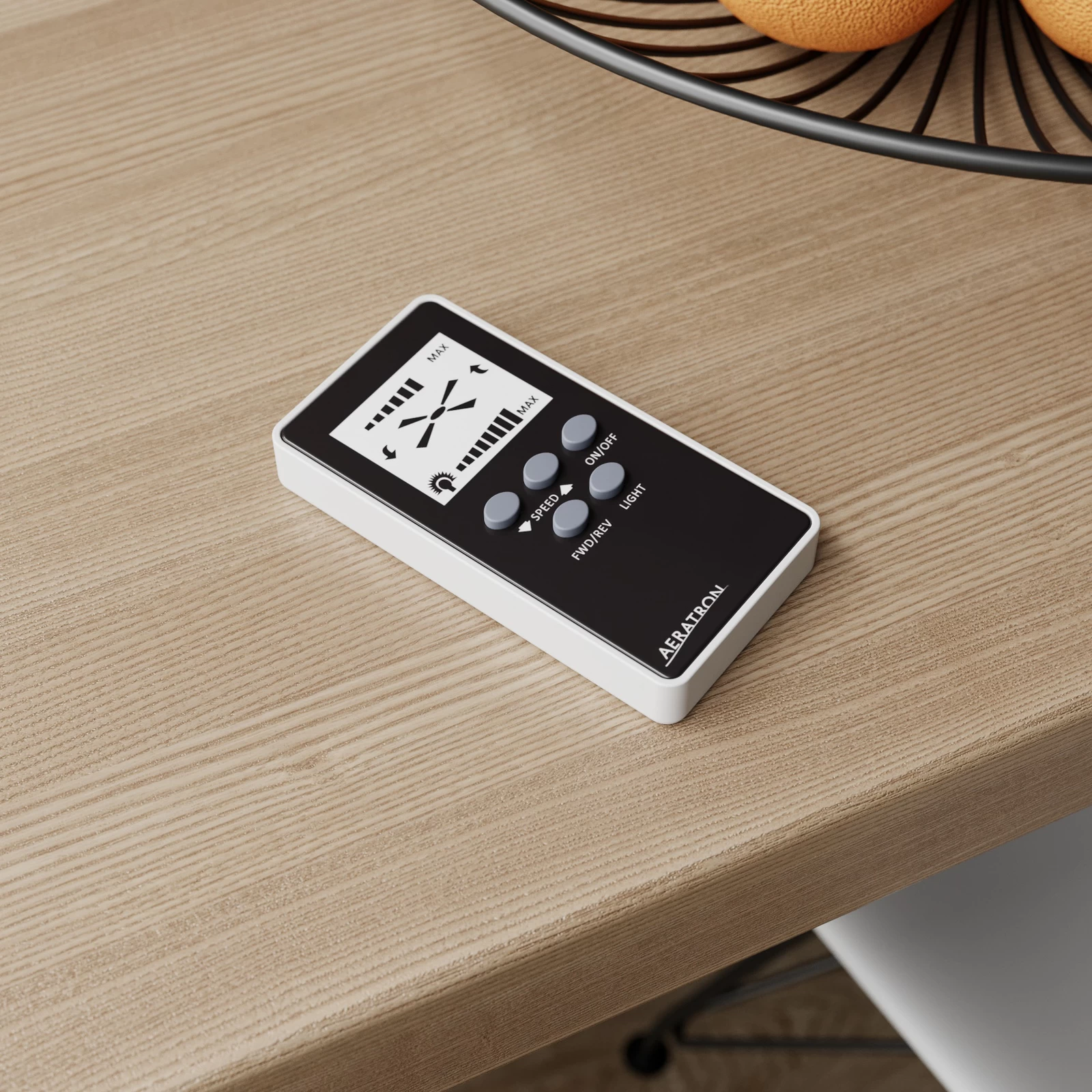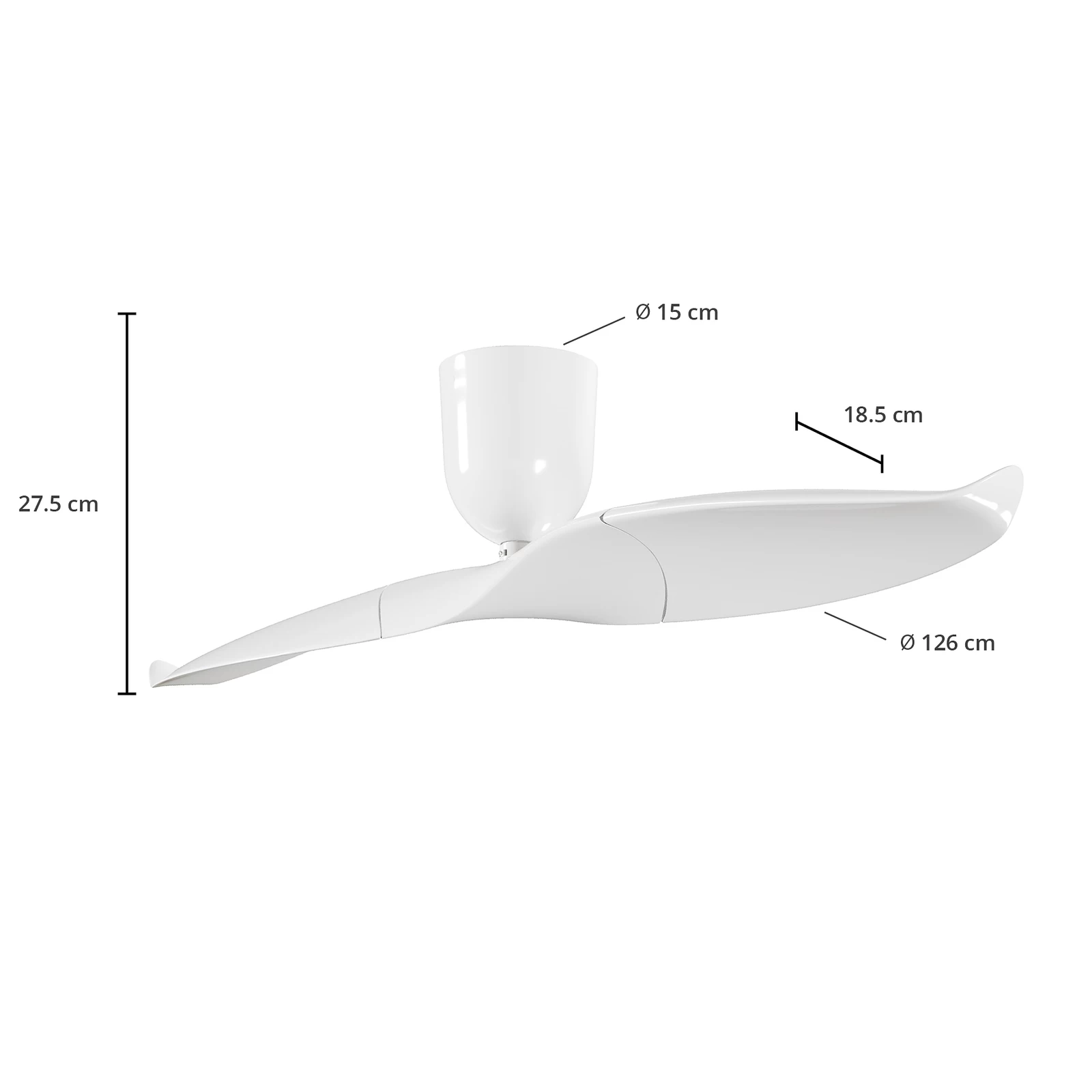To-vinget loftventilator AE2+ i hvid, med fjernbetjening, egnet til frem- og tilbageløb