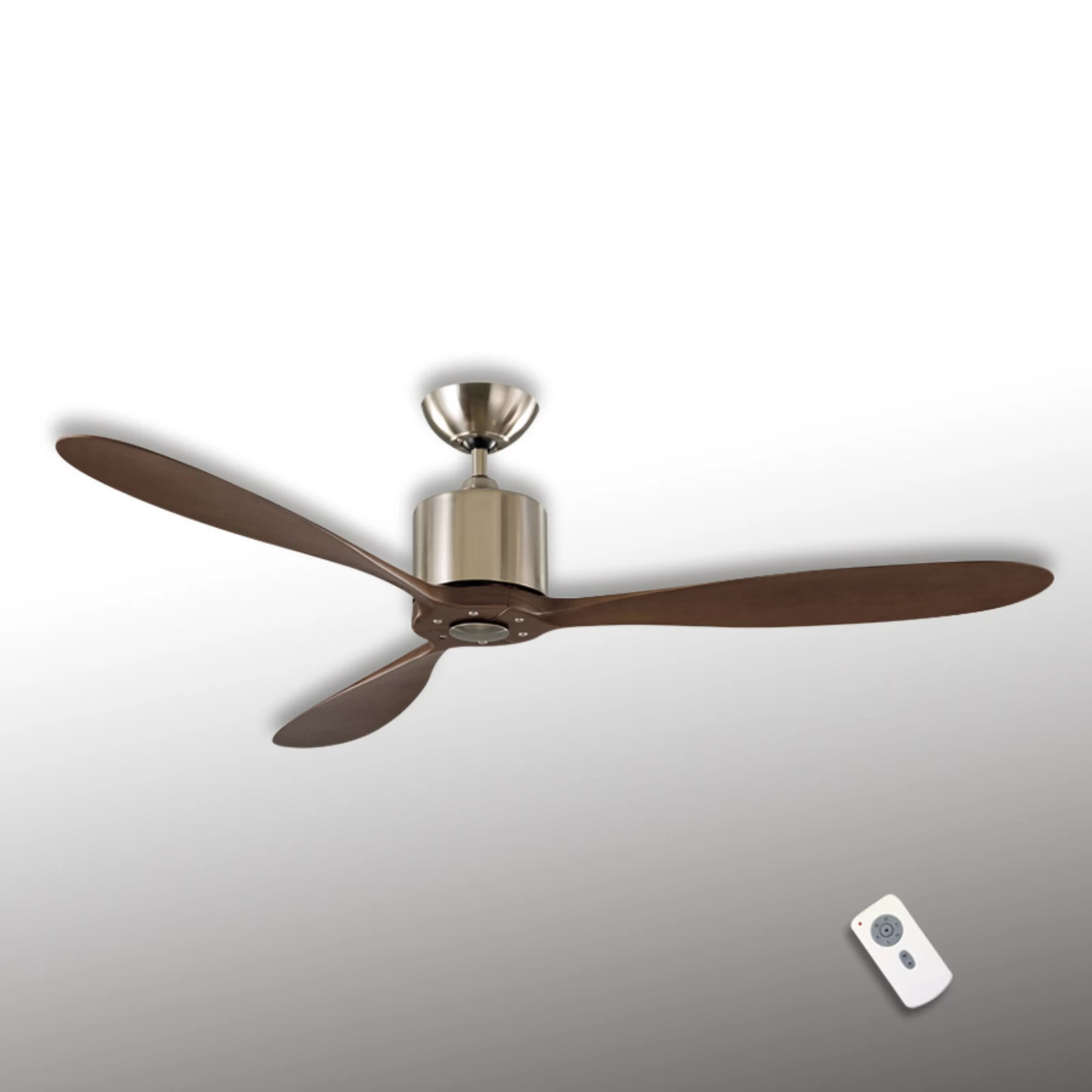 Loftventilatoren Aeroplan er smukt designet med tre blade i valnødde-look. Det ser elegant ud og passer perfekt ind i et eksklusivt boligmiljø. Fjernbetjeningen og vægbeslaget er inkluderet i leveringen.