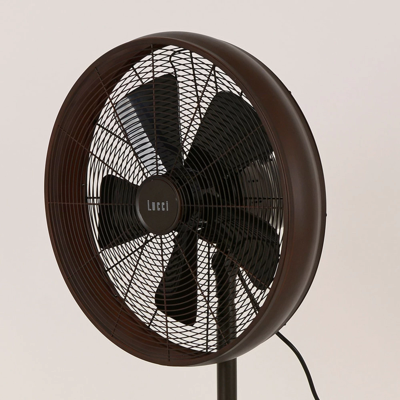 gulvventilator Breeze kommer i et klassisk, simpelt design. Dens fem plastvinger er i et hoved med et beskyttende gitter. Denne er lavet af stål – ligesom stel, der består af en rund fod og et teleskopfod til højdejustering.