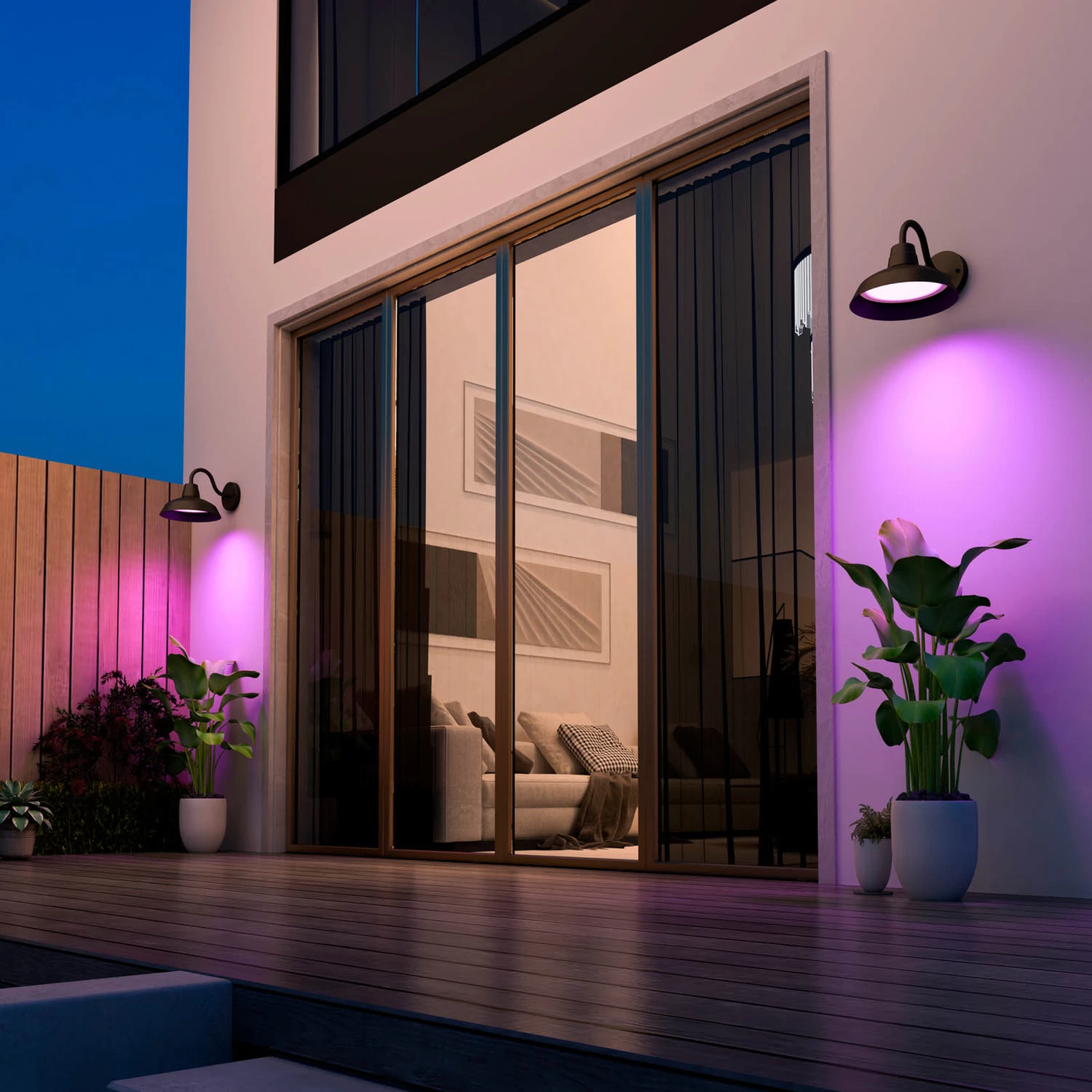 Intelligent styring af udendørs belysning: LED udendørs væglampe Smart Outdoor Classic Væglampe, CCT, RGBDen LED udendørs væglampe Smart Outdoor Classic Væglampe er en moderne form af en klassisk, nedadvendt væglampe. Konceptet er dog ikke kun blevet moderniseret optisk, men der er også integreret en intelligent lysstyring.En Calex Smart Outdoor Link Bluetooth Mesh Gateway er nødvendig for integration. Denne fås separat som tilbehør. Den integreres via WLAN, så et WLAN-netværk er nødvendigt. Forbindelsen fra gatewayen til Smart Outdoor Classic væglampen etableres via Bluetooth, og lampen kan nu skiftes og lysintensiteten kan dæmpes. Desuden kan der vælges mellem over 100 lysfarver, og der kan også indstilles forskellige hvidtoner (2.700 K – 6.500 K). Styring ved hjælp af stemmekommandoer er også mulig.Tekniske egenskaber / kompatibilitet:- Kan styres via Calex-appen (gratis til Android og iOS)- Over 100 lysfarver samt justerbar hvidt lys: varm hvid (2.700 K) – dagslys (6.500 K)- Timer og foruddefinerede scener kan indstilles via appen- Stemmestyring mulig med Amazon Alexa, Apple HomeKit (Siri) og Google Assistant- Dæmpbar via app eller stemmekommandoBemærk: En Calex Smart Outdoor Link Bluetooth Mesh Gateway (se tilbehør) og et eksisterende Wi-Fi-netværk er obligatorisk for intelligent lysstyring.
