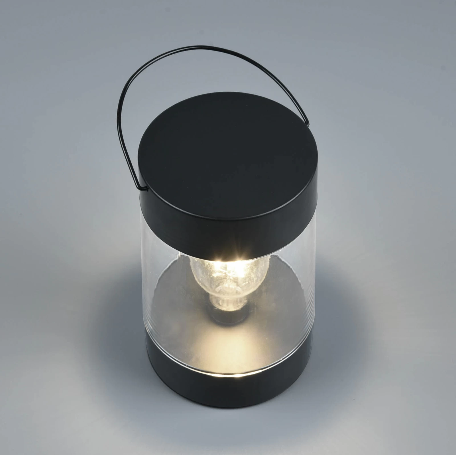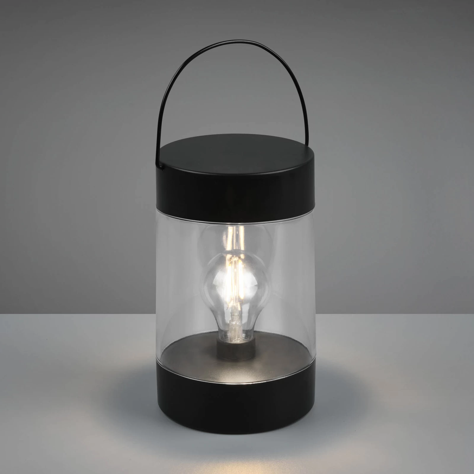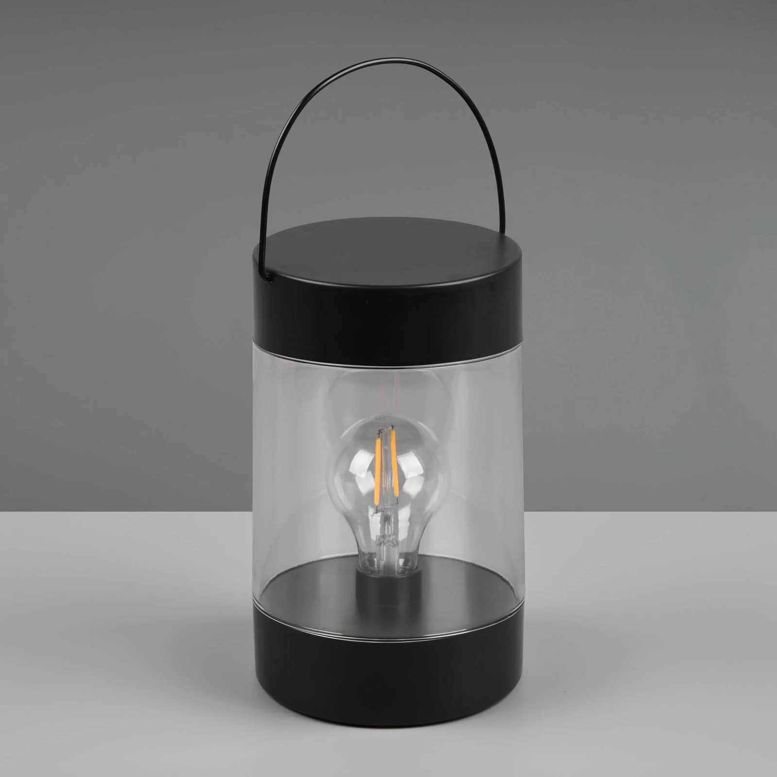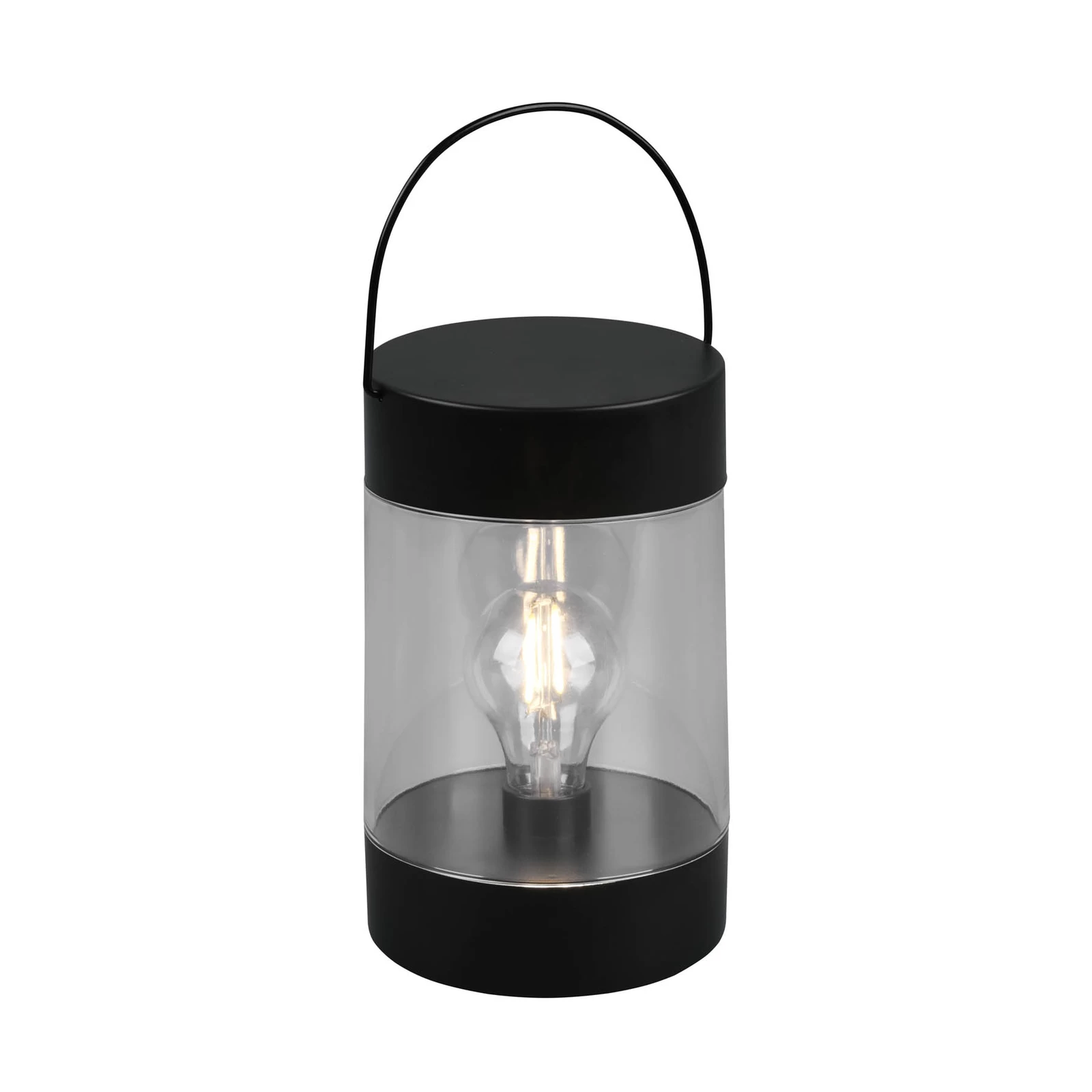 LED-terrasselanternen Camargo er en moderne fortolket lanterne i sort finish med klar sideafdækning. Indvendigt er der integreret en LED-lyskilde i form af en glødelampe. Takket være stænkvandsbeskyttelsen (IP44), batteridriften (3 x AAA – medfølger ikke) og det praktiske håndtag til at bære eller hænge Camargo er den absolut alsidig og kan bruges både indendørs og udendørs som en stemningsfuld lysaccent. Skiftet kan foretages manuelt eller ved hjælp af en timerfunktion (6 timer tændt – 18 timer slukket).