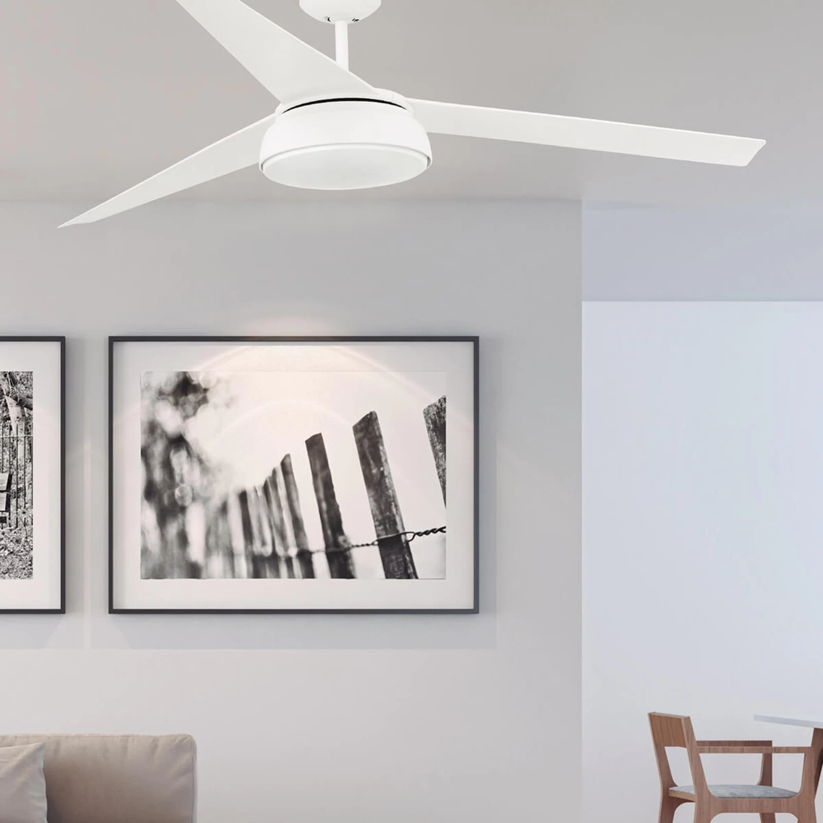 Med en diameter på 152 cm, egner den puristiske designet loftventilatoren Vulcano med en diameter på 152 cm, til rum på en størrelse fra 30 kvm. Den passer med dens neutrale farve til mange moderne bolig stilarter.