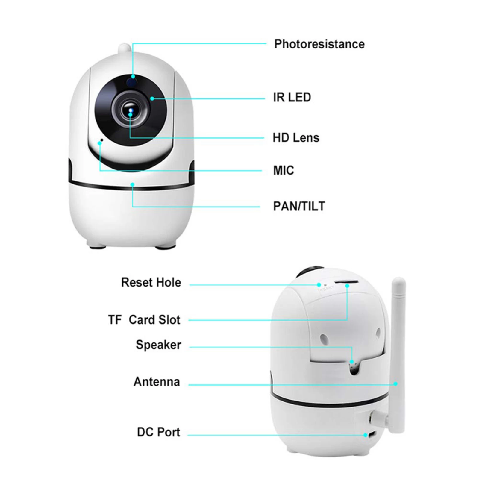Denver SHC-150 indendørs WLAN-kamera, der kan peges, med PIR-bevægelsesdetektion og infrarød nattesynsfunktion