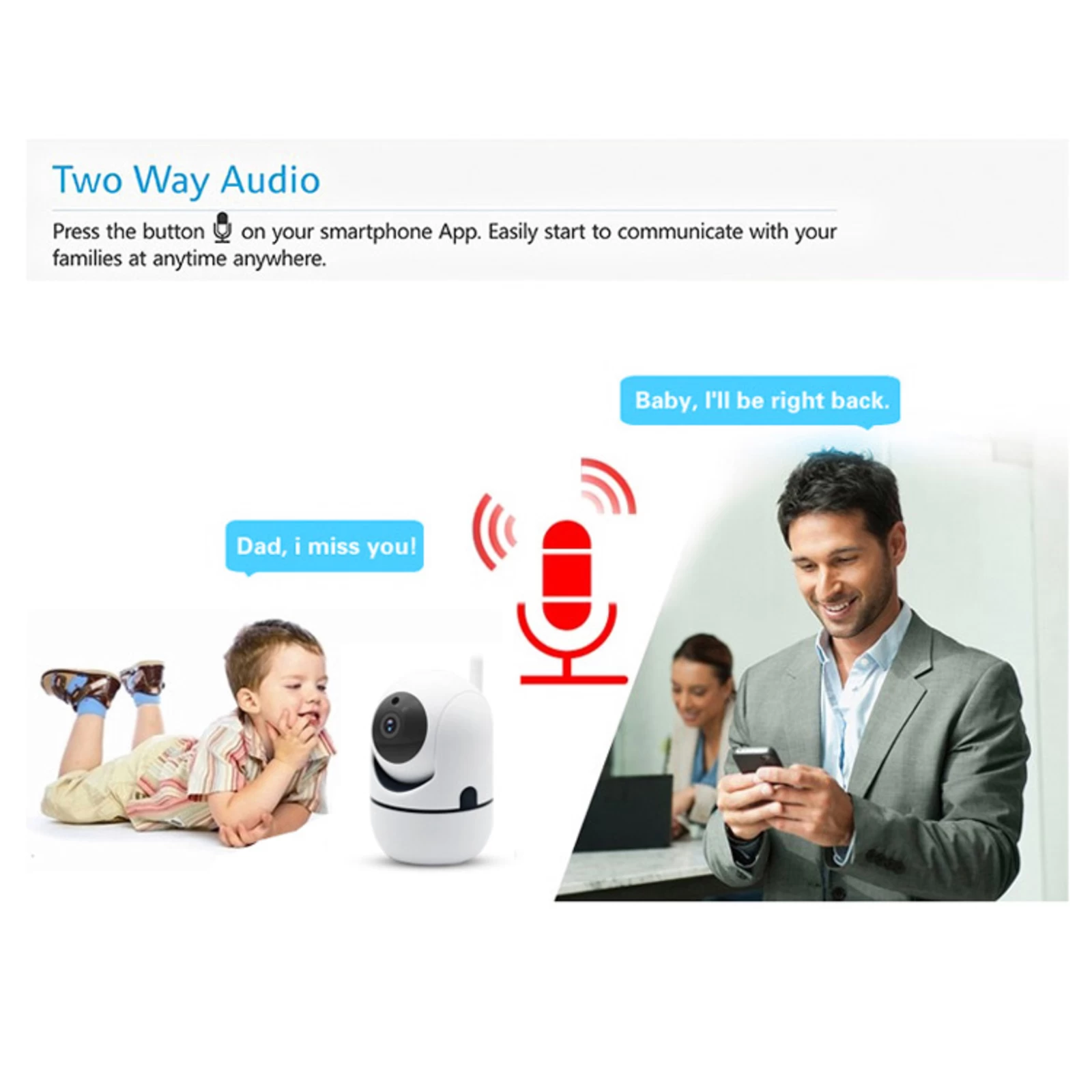 SHC-150 er et smart kamera, der gør det muligt at foretage videoovervågning af det indendørs område om dagen og om natten. Den registrerer bevægelser og kan i dette tilfælde aktivere sig selv automatisk, hvilket også kan gøres via appen til enhver tid. Orienteringen kan justeres på afstand takket være motoren. Kommunikation med de tilstedeværende personer er mulig takket være højttaleren og mikrofonen.