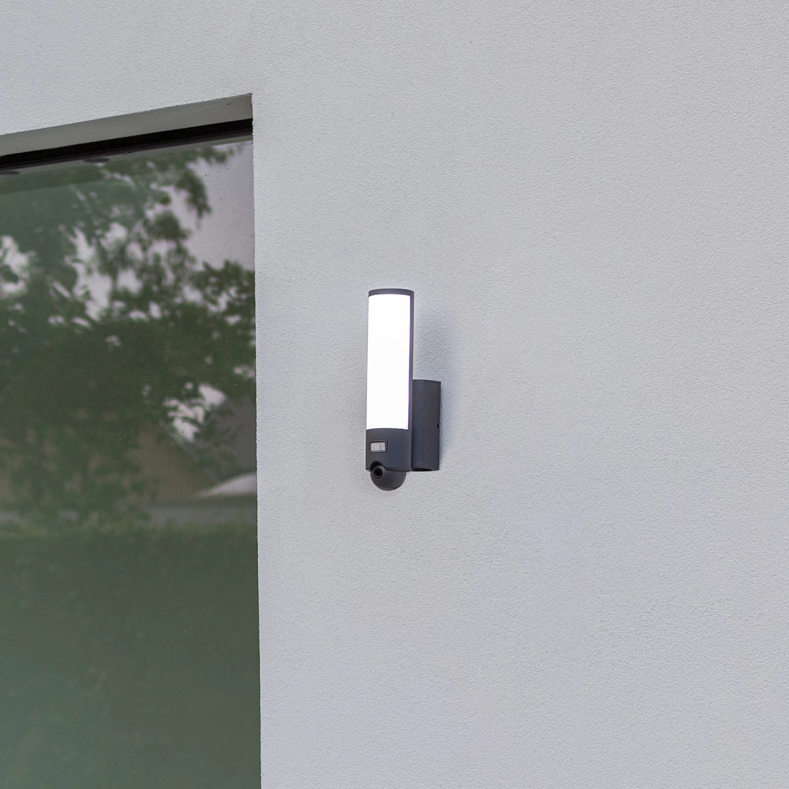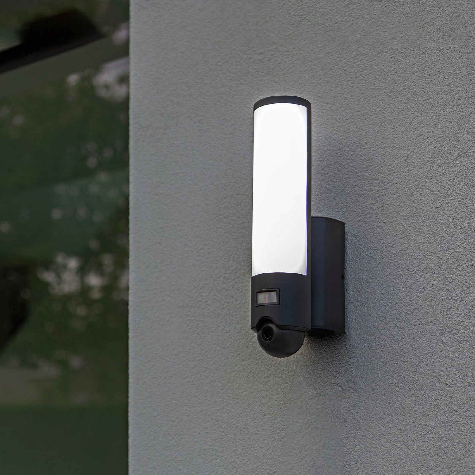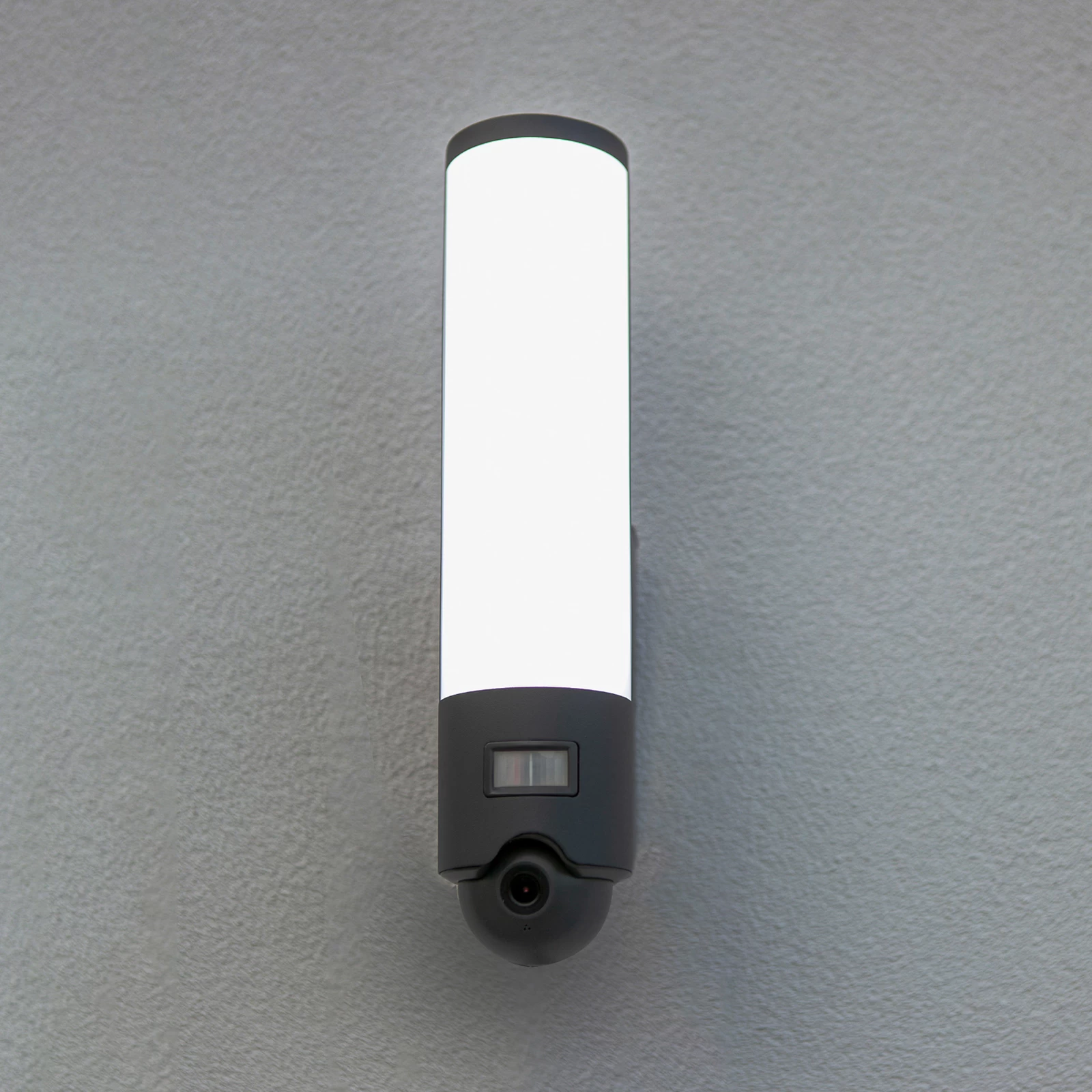 Sort udendørs LED-væglampe Elara af plast med bevægelsesdetektor og kamera Elara er en enkel LED-væglampe til udendørs brug. Den er lavet af plast, som har en antracitfarvet overflade. De fastmonterede LED’er sidder bag en hvid plastskærm, som gør det muligt at opnå en blændfri belysning. LED’erne er også dæmpbare og kan lyse i forskellige lysfarver mellem varm hvid og dagslys. Den udendørs LED-væglampe Elara har også et roterende og drejeligt kamera og en infrarød bevægelsesdetektor. Disse praktiske funktioner gør Elara til en nyttig ledsager til udendørs brug. Tekniske data – lysfarve justerbar fra varm hvid (2.700 K) til dagslys (6.500 K) – dæmpbar – bevægelsesdetektor rækkevidde 10 m – bevægelsesdetektor detekteringsvinkel 120° Særlige funktioner – kan styres via den gratis Tuya Smart-app og Lutec Connect-appen (tilgængelig til iOS og Android) eller via en separat tilgængelig fjernbetjening – kompatibel med stemmeassistenter som Amazon Echo, Google Home (Lutec Access Box er påkrævet til dette, se tilbehør)
