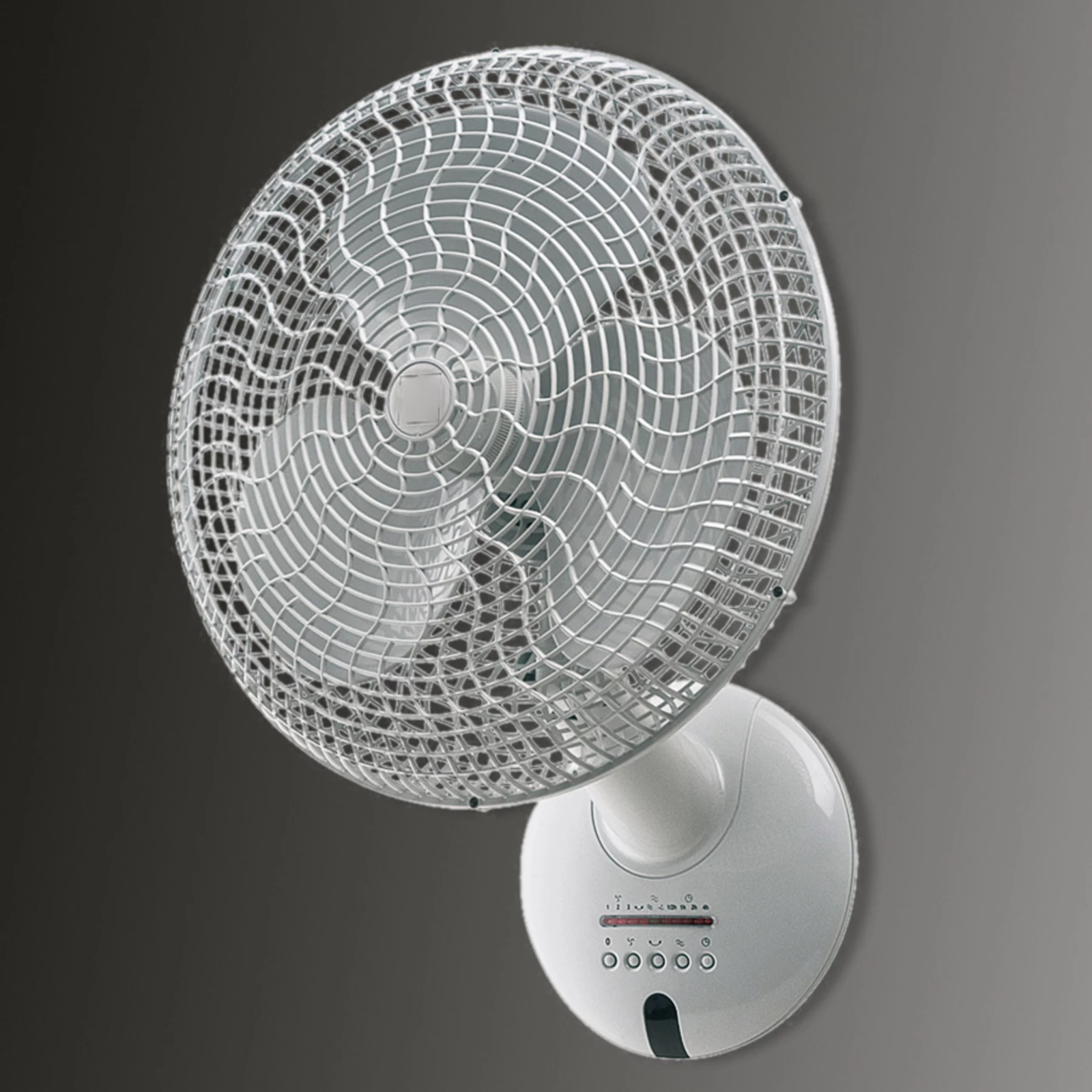 Vægventilatoren Gordon Wall er af robust plast – både kabinettet og beskyttelseskurven og vingehjulet. Den kører i tre hastigheder som efter ønske kan indstilles pr. fjernbetjening eller på selve enheden. Den elektroniske 90°-oscillation kan slukkes. Hældningen af kurven er lodret justerbar. Gordon Wall er udstyret med en stabil vægholder. Den monteres med helt almindelige monteringsmaterialer. Ved rengøring af gitteret og vingerne kan man åbne kurven.