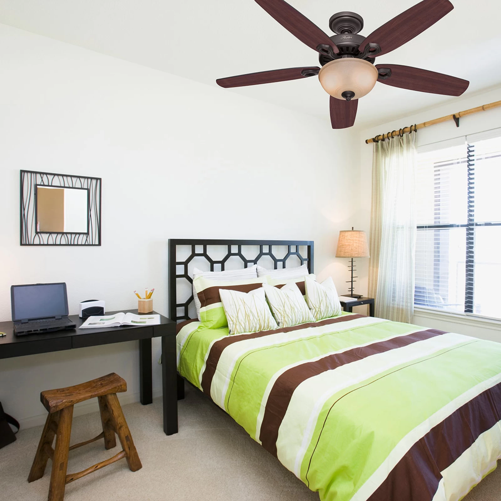 Loftventilatoren Builder Deluxe der er udstyret med en støjsvag Whisperwind®-motor, er også velegnet til støjfølsomme områder som soveværelset.