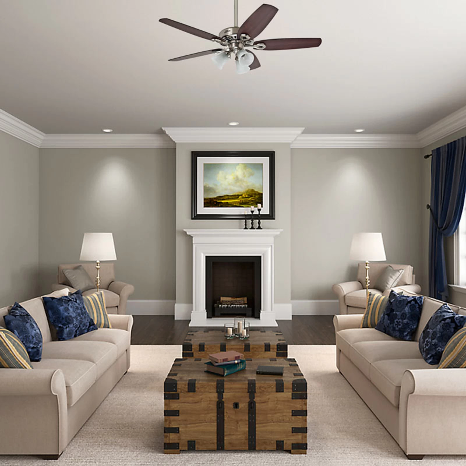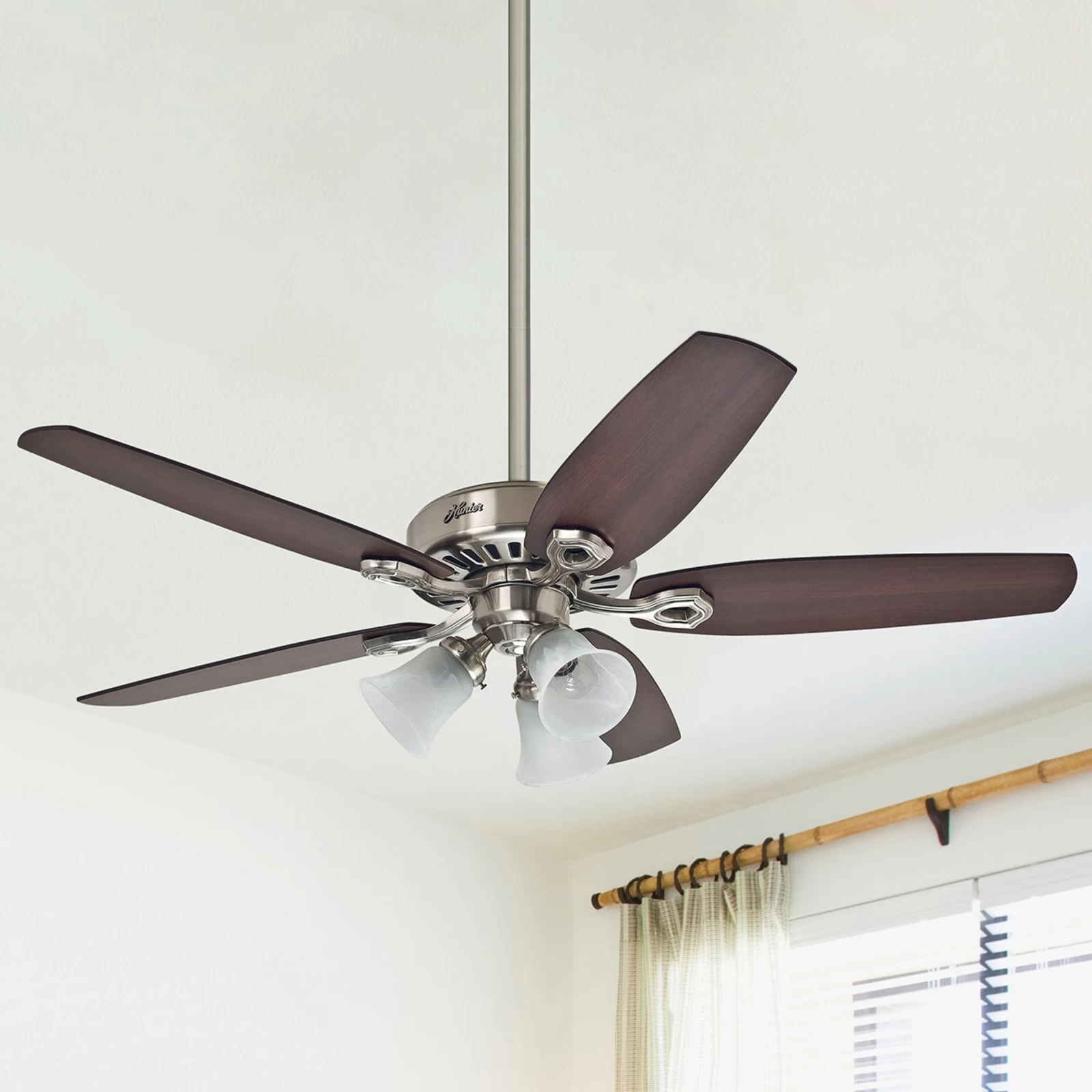 Et behageligt indeklima og tilstrækkelig belysning: Med loftventilatoren Builder Plus opnår man begge dele. Loftventilatoren der er udstyret med den støjsvage Whisperwind®-motor, leveres med en passende lampe med 3 lyskilder. Dertil kommer også fine trævinger, der kan monteres på begge sider. Siderne er tilgængelige med kirsebær eller mørk valnød dekor.