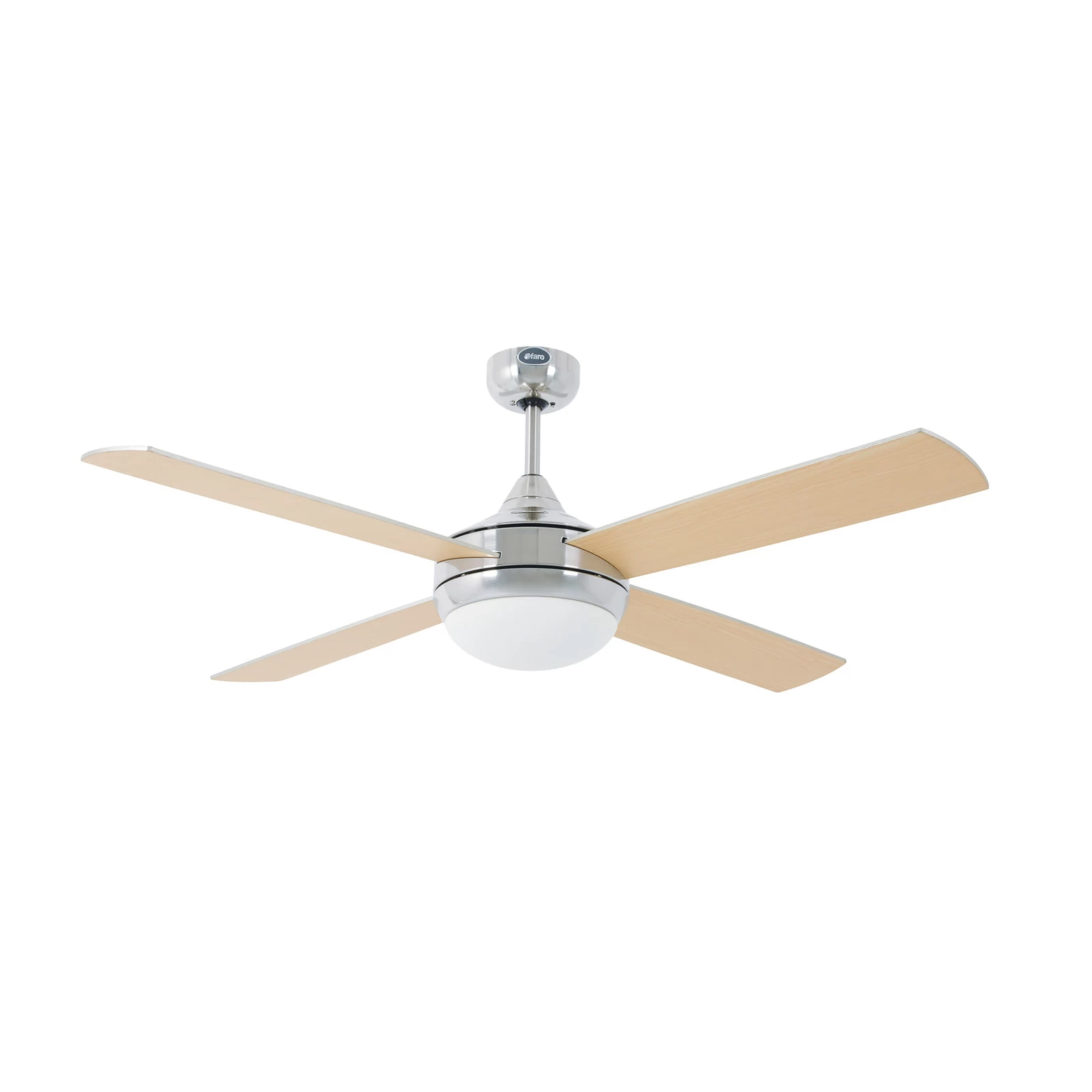 Tidløst elegant loftventilator Icaria L – vendbare bladeLoftventilatoren Icaria L er udstyret med fire vinger af MDF-træ og er ideel til at friske luften op i rum på op til 17 m². Med lyskilde til almen belysning (2 x E27). Inklusive fjernbetjening (uden batteri: 1 x 6F22 (6LR61) 9V).FunktionerUdstyret med sommer- og vinterfunktion: Icaria L sikrer en jævn fordeling af den opvarmede rumluft i vinterkørslen for at reducere varmeudgifterne.Tre hastigheder og tre effektniveauer kan styres via fjernbetjeningen (medfølger).Tekniske dataEffekt pr. hastighed:- 15 watt ved 100 omdr. pr. minut- 30 watt ved 150 omdr. pr. minut- 56 watt ved 205 omdr. pr. minutLuftmængde: 155,62 m³