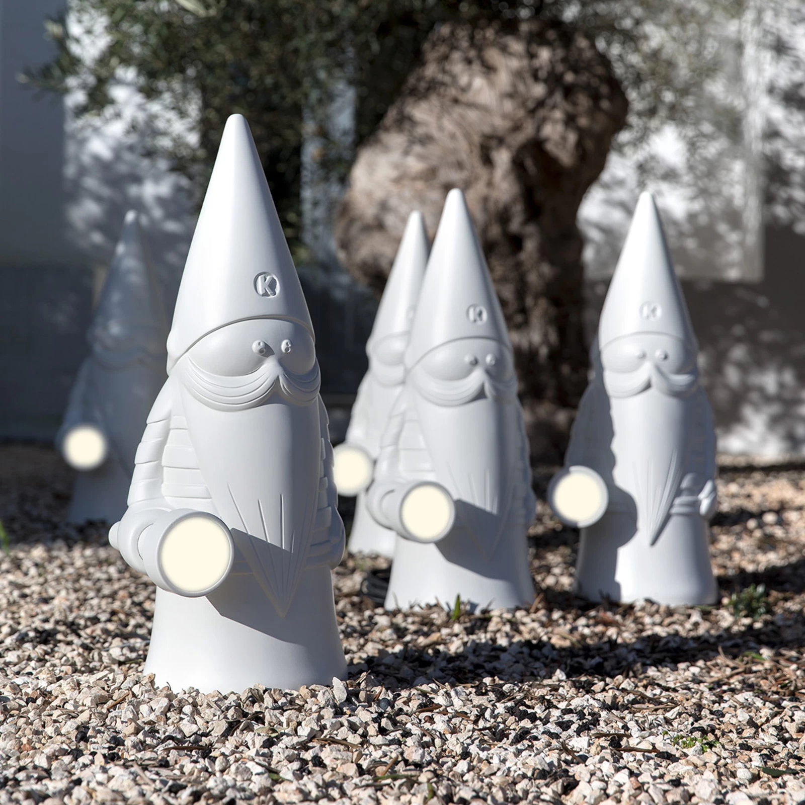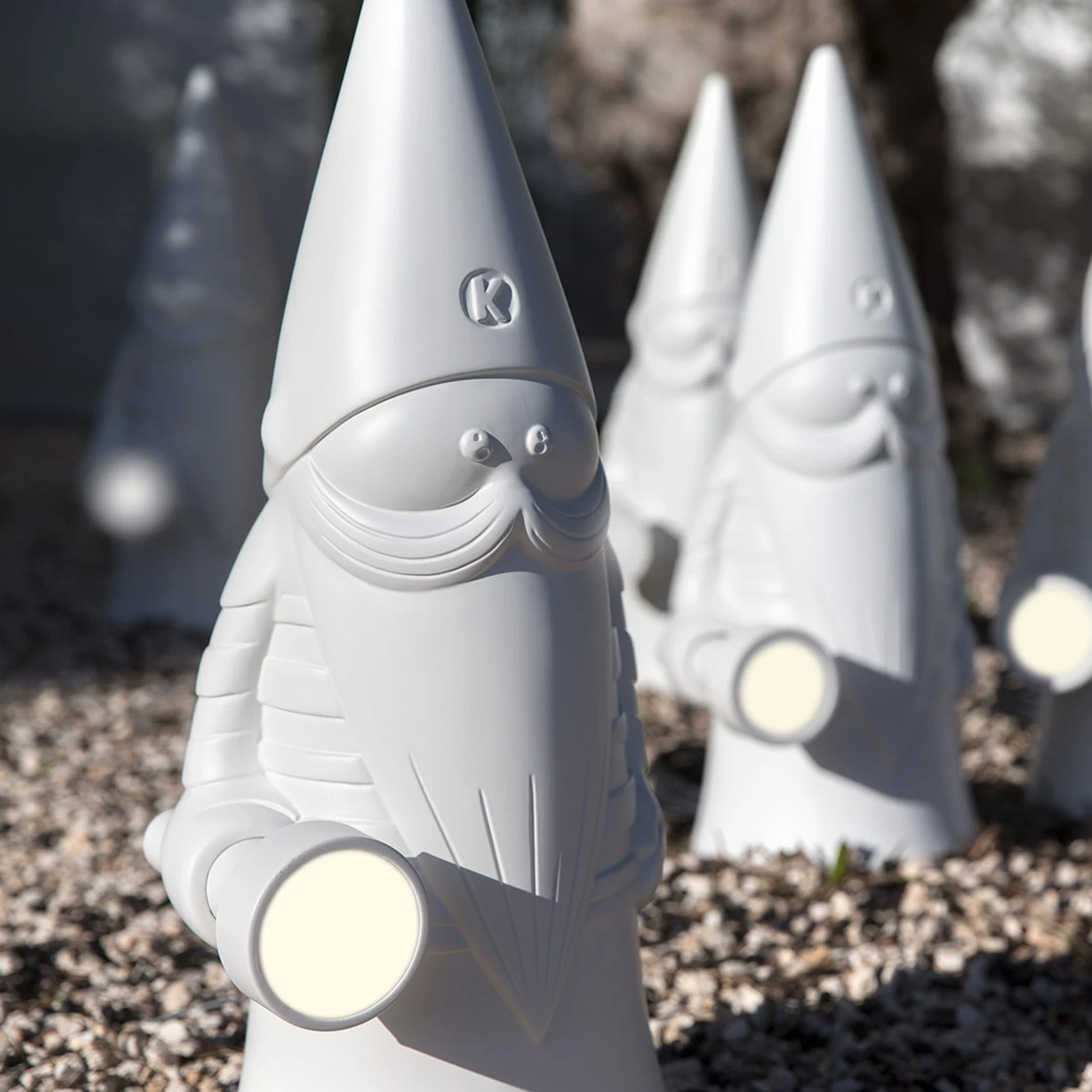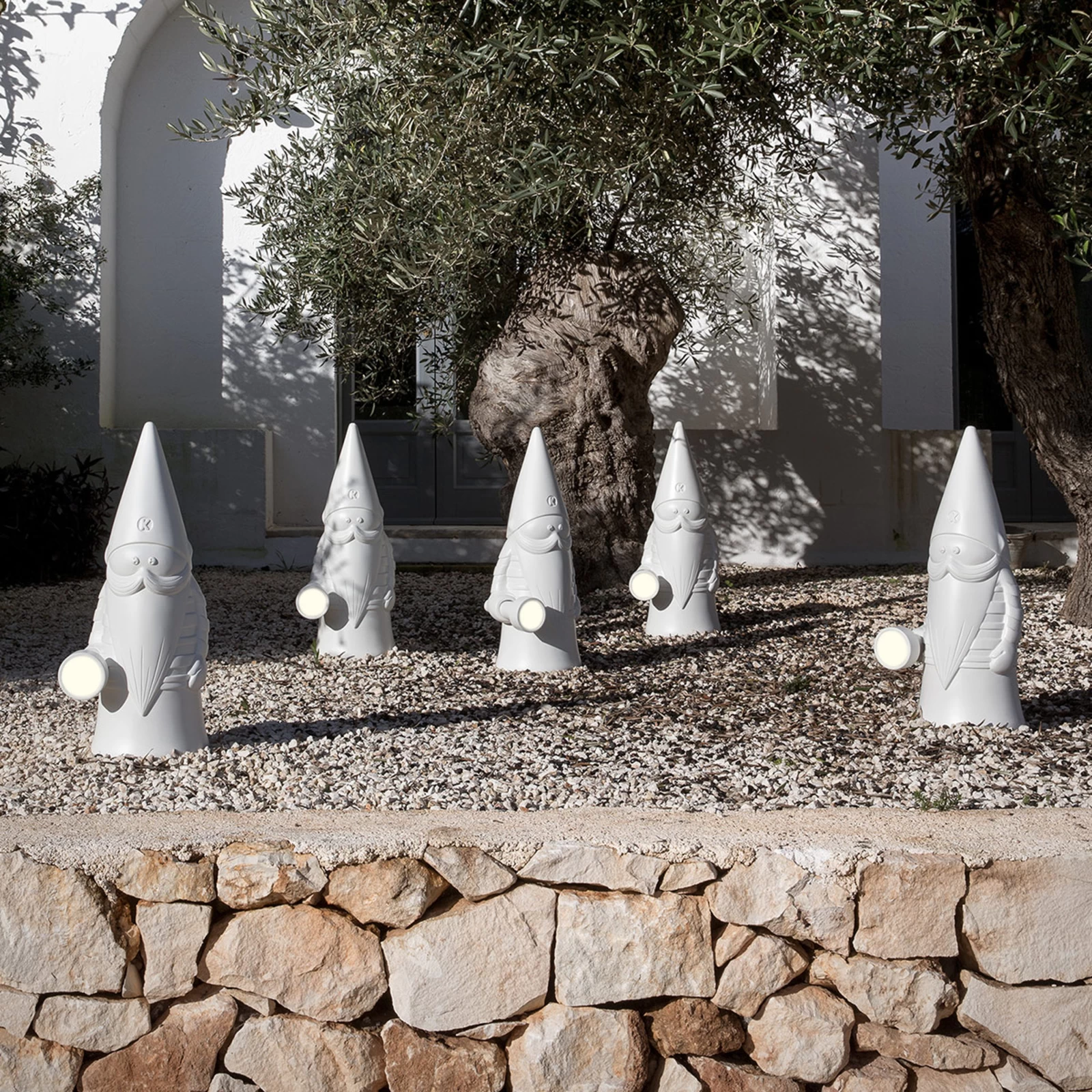 Enhver, der mener, at Snehvide kun boede med syv dværge, tager fejl. standerlampe Ottavo fra Karman lærer ham bedre, fordi Ottavo betyder “den ottende”, hvilket betyder den manglende ottende dværg. Ottavo er en hvid technopolymer have-kabine, der holder en lommelygte i hånden, som han bringer lys ind i mørket – f.eks. B. som en terrasselampe. IP55- kapslingsklasse udstyrer den mod vejrpåvirkningen og gør det i stand til at modstå regn, støv og varme uden skader.