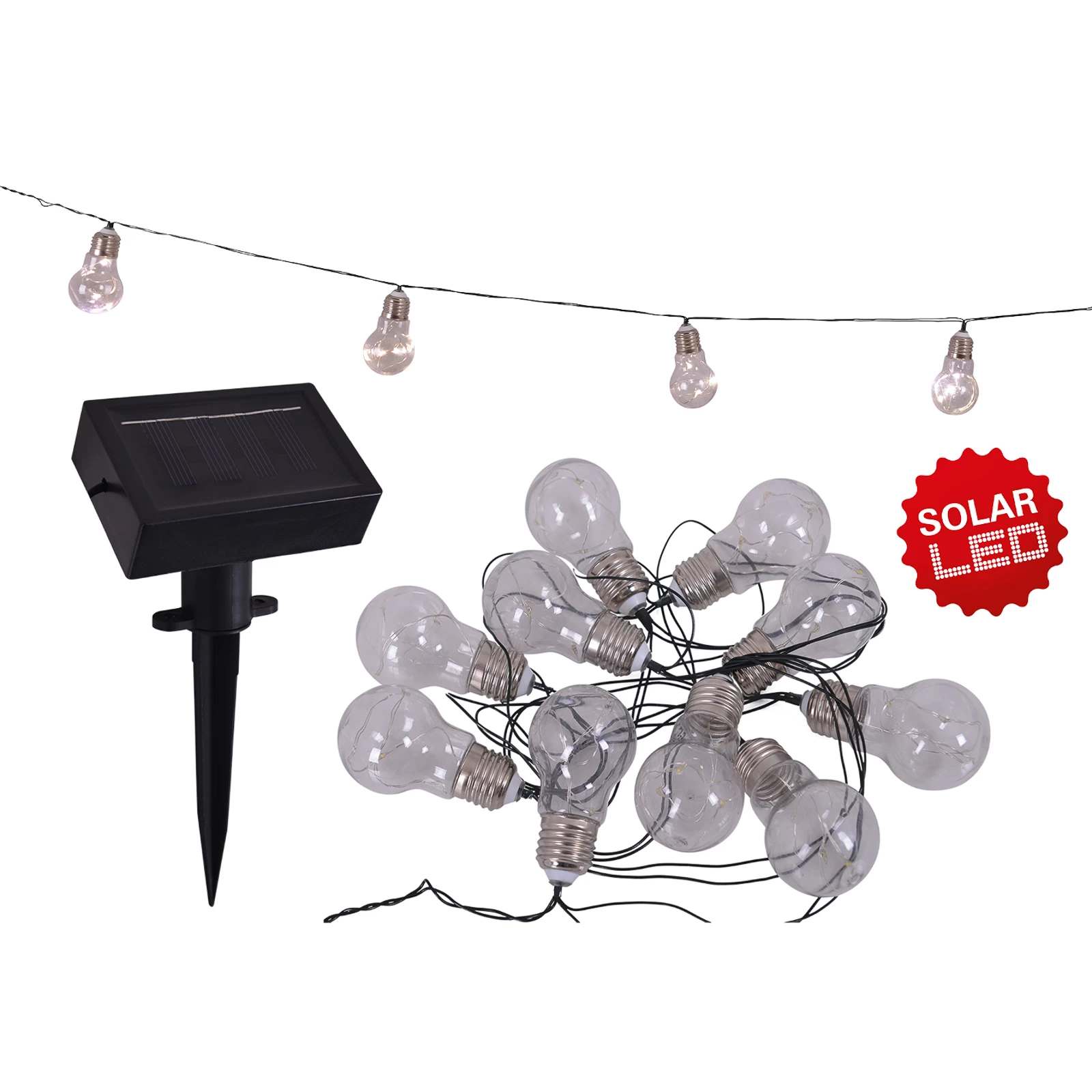 LED-lyskæde M. Solcelle, Glødepære, 10 Lyskilder