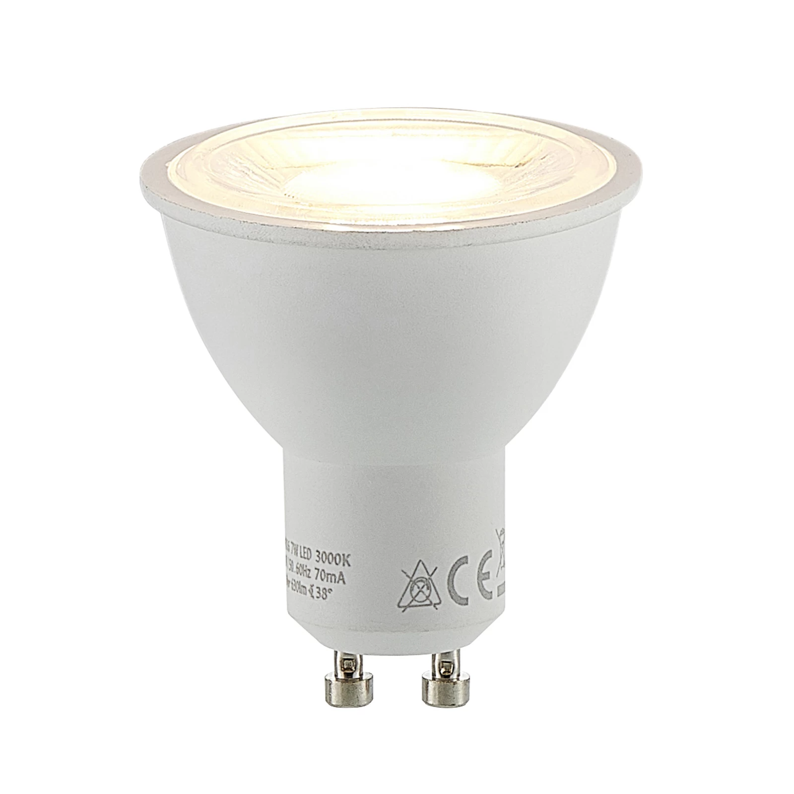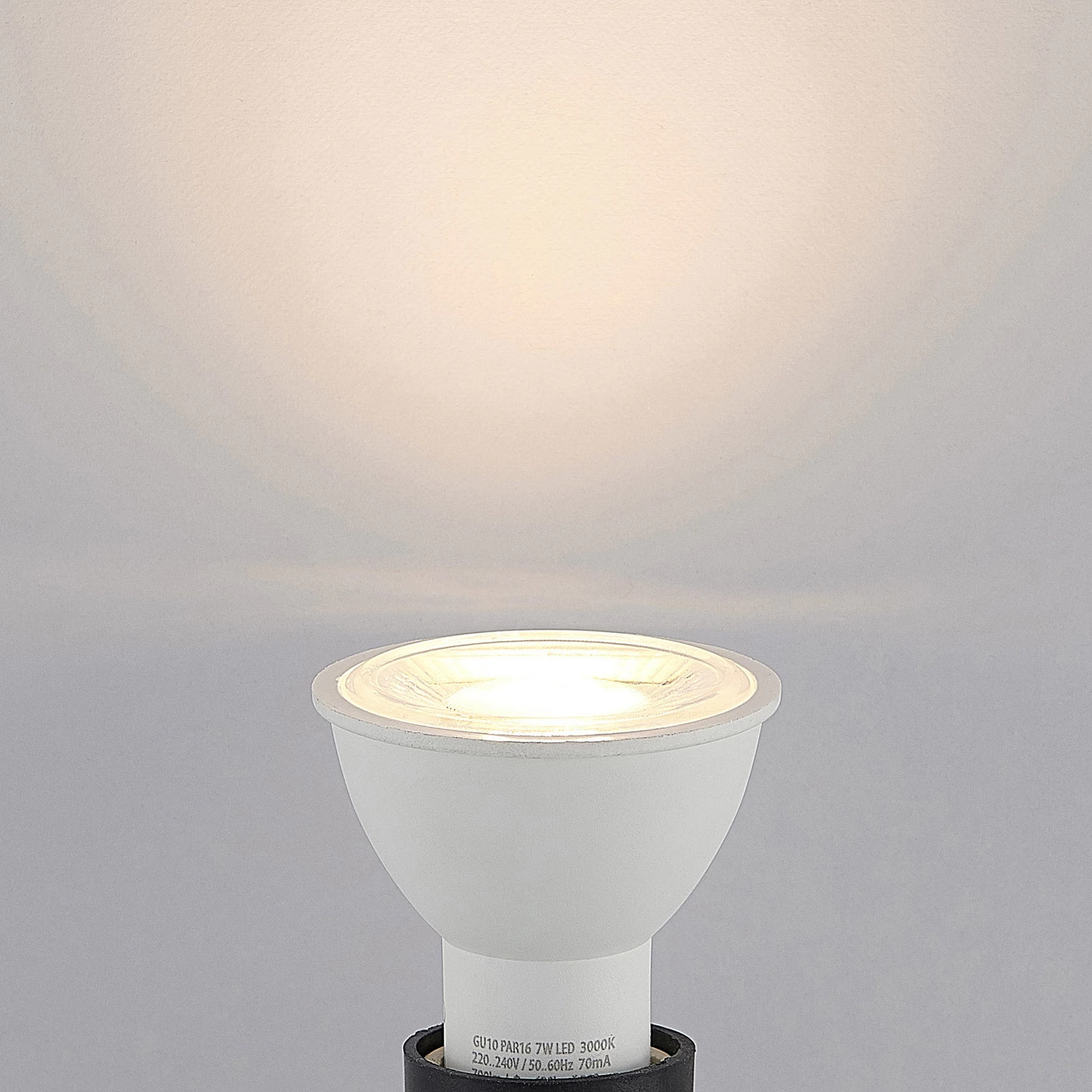 LED-reflektor GU10 7W 3.000K 38° i et sæt med 10 stk.I eksisterende spots, hvor halogenlamper med et strømforbrug på 50 W anvendes til at give lysstyrke, kan denne LED-reflektor PAR16 anvendes som et energibesparende og langtidsholdbart alternativ. Den giver et accentuerende lys, der sætter smukke lyse accenter med en udstrålingsvinkel på 38°. – LED-reflektoren er ikke dæmpbar – Lampen leveres i et praktisk sæt med 10 stk