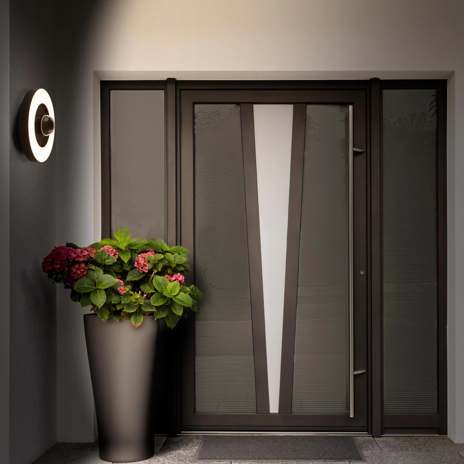 LED-overfladebelysning Circle Camera til udendørs brug med sensor og kamera, smart styrbarVægarmatur og kamera i ét – det er LED-overfladebelysningen Circle Camera i rund form. Den er fremstillet af mørkegråt plastik og er udstyret med varm hvide lysdioder. Takket være bevægelses- og skumringssensoren aktiveres belysningen og kameraet automatisk. Efter WLAN-integration er dette også altid muligt via app eller stemmekommando. Kameraets optagede data transmitteres live i HD-kvalitet og gemmes på et hukommelseskort til lokal brug eller i LEDVANCE SMART Cloud-lageret. Desuden er der integreret en alarmsirene og en stemmeanordning til kommunikation med besøgende.- enkel og hurtig installation; også fra loftsarmatur- øget sikkerhedsfølelse takket være høj lysstyrke- materialer af høj kvalitet- styrbar via LEDVANCE SMART-appen- stemmestyring via Google Assistant eller Amazon Alexa mulig- indbygget fjernbetjening og alarmfunktion- dæmpbar- kamera med HD live-billedoverførsel- IK05-indeks for slagfasthed- detektionsafstandssensor: detektionsvinkel 340°, detektionsafstand 3 – 5 meter- udløsningstærskel dagslys-sensor 10 til 500 lx- justerbar koblingstid via bevægelsessensor: 5 sekunder til 6 minutter