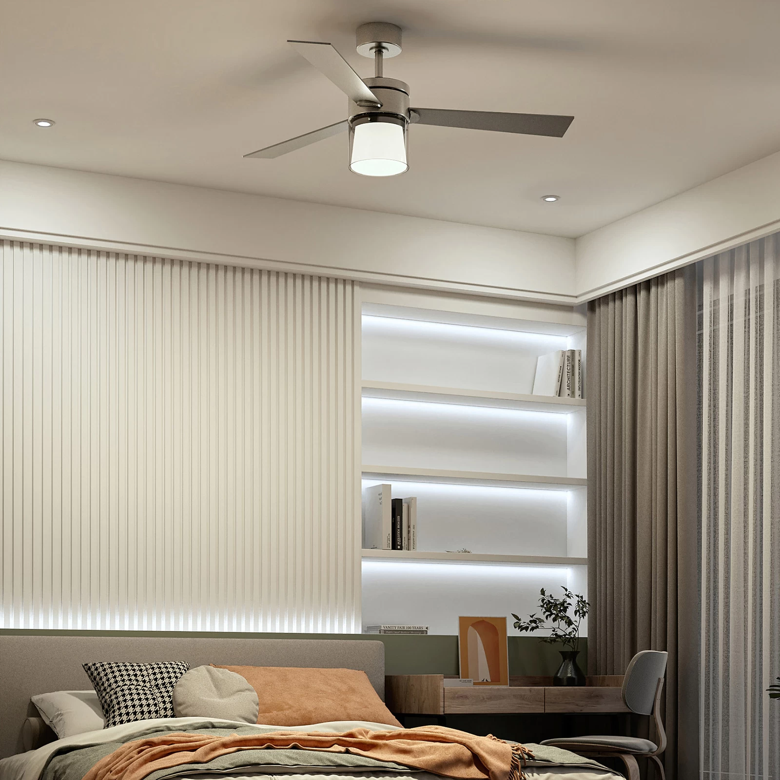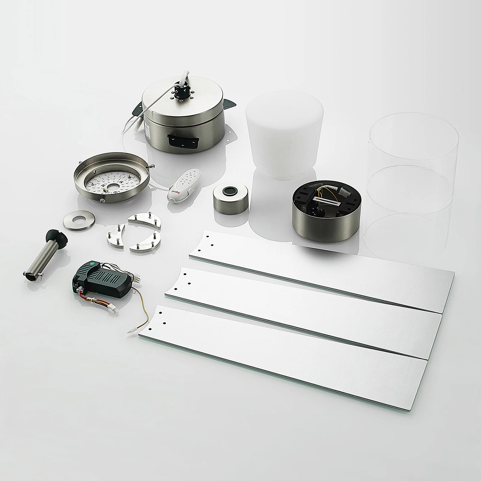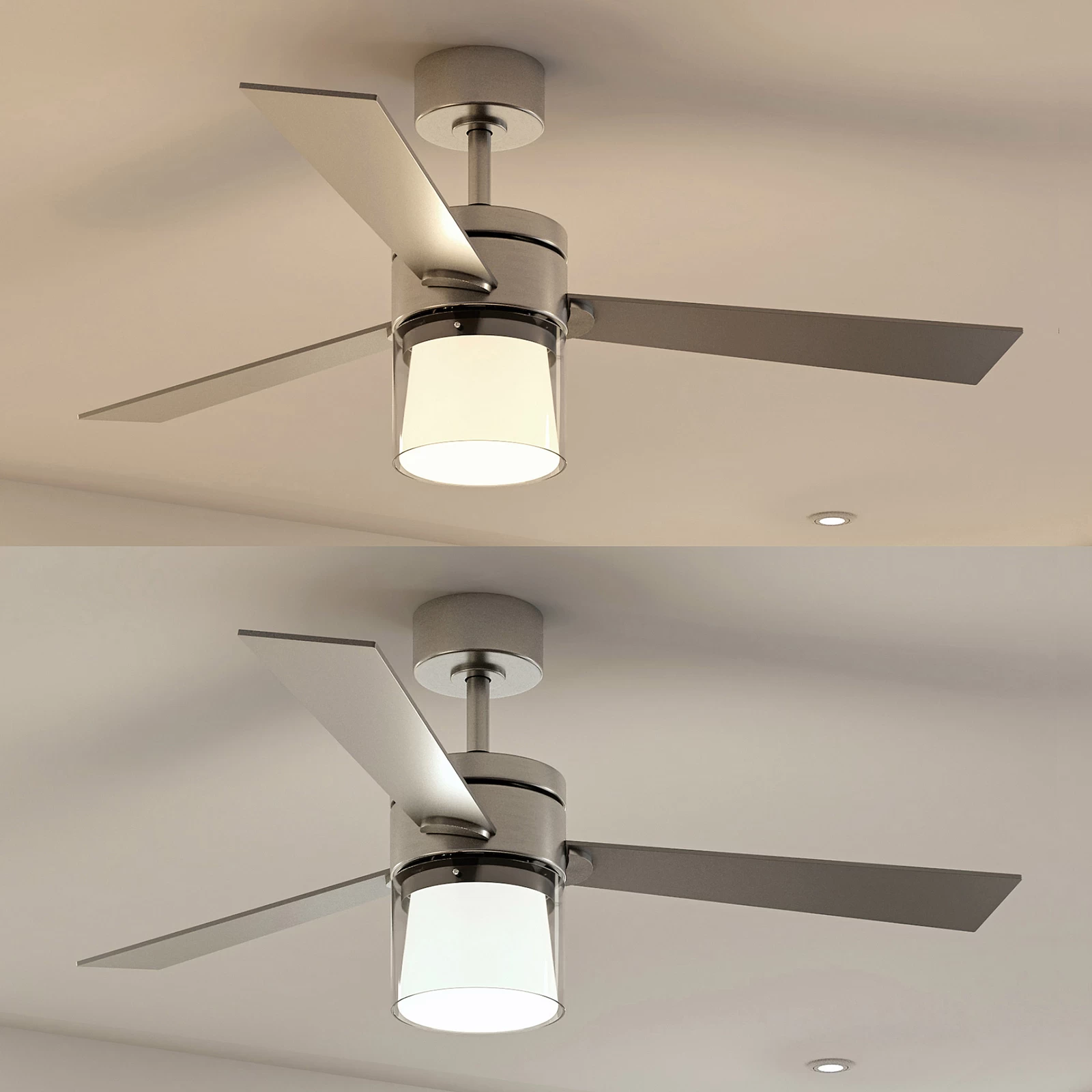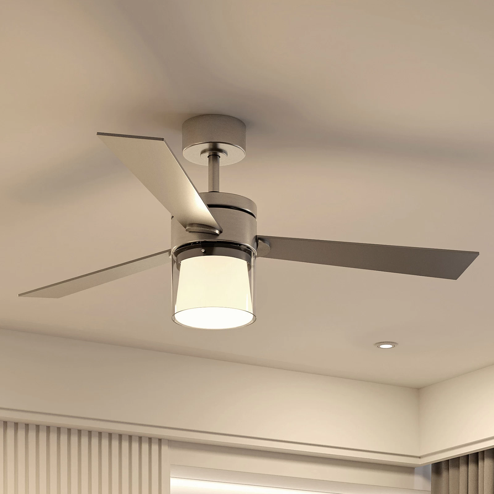 Oplyst loftventilator Amelis med tre sølv blade og fjernbetjening, lysfarve variabel