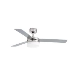 Amelis passer godt til moderne interiør og er en ventilator til loftet, der har tre sølvblade og også har en integreret belysningsfunktion. Den medfølgende fjernbetjening kan bruges til at styre de forskellige funktioner, og den ideelle rumstørrelse til den mest fordelagtige drift af loftventilatoren er mellem 15 og 22 m².