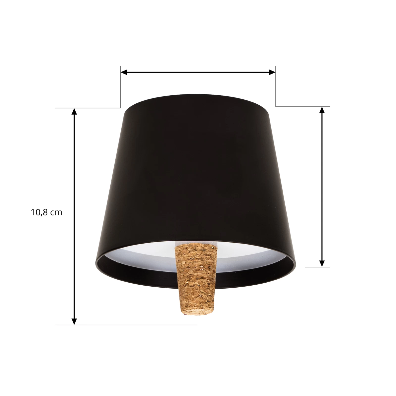 Batteridrevet LED-vinflaskelampe Linor af aluminium Med denne bordlampe kan du tilføje en attraktiv belysningsløsning til dit interiør, som er placeret i en vinflaske. Bordlampen kan nemt tændes og slukkes med en kontakt og har mulighed for dæmpning, hvilket skaber en tiltalende feelgood-atmosfære. Den supplerer effektivt belysningskonceptet i ethvert område med sit flotte look. Armaturet har kapslingsklasse IP44 og er derfor beskyttet mod indtrængen af faste fremmedlegemer med en diameter på mere end 1 mm og vandstænk. Den lyser i et hyggeligt, varmt hvidt lys, så du føler dig godt tilpas. Den flotte bordlampe med det smukke design passer perfekt ind i dit hjem og skaber en behagelig atmosfære. Alle Lindby-mærkets kvaliteter og særlige egenskaber er samlet i denne bordlampe. Lampen beriger det samlede billede af dit interiør. Denne lampe afrunder din indretning på dygtig vis.
