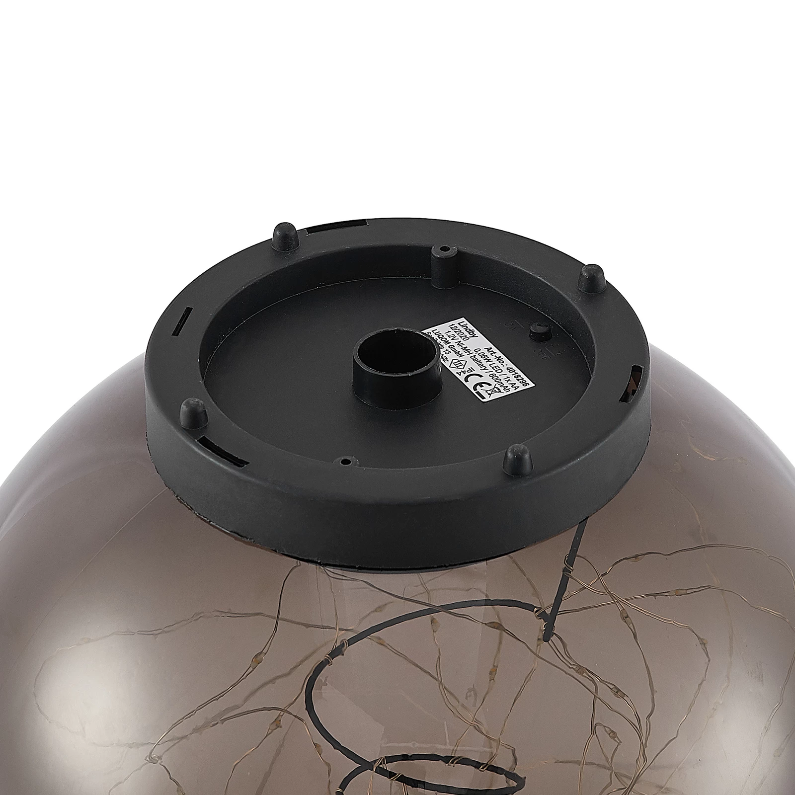 Tjelle LED-solcellelampe sollampe imponerer frem for alt med sit slående design. Den består af sort plast og en røgfyldt, sfærisk lampeskærm med en smal LED-strip i midten. Når den er tændt, genererer dette varme hvide lyspunkter, der med deres udseende minder om en stjernehimmel om natten. På grund af den lille jordspids er lampen ideel til installation i en have og er mobil til enhver tid takket være sol- og batteridrift. LED-solcellelampe giver seks til otte timers pålideligt lys med fuldt opladede batterier og kan med sit moderne ydre let integreres i resten af dekorationen i haven. kapslingsklasse IP44 indikerer, at den er beskyttet mod stænkvand. Det kan også let kombineres med andre lys i serien for at skabe et harmonisk helhedsbillede.