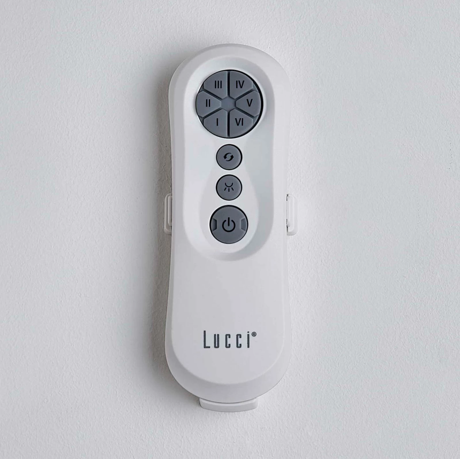 Loftventilatoren Line kan skiftes i seks hastigheder via den medfølgende fjernbetjening. Desuden kan fjernbetjeningen også bruges til at skifte fra sommer- til vinterfunktion.