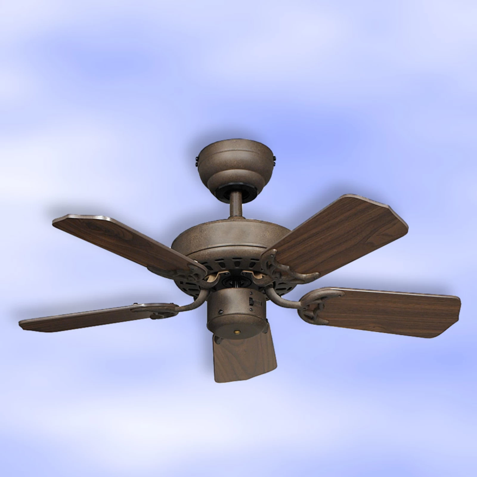 Kompakt loftsventilator Royal 75, kabinet i antik-brun, vinger i nøddetræ