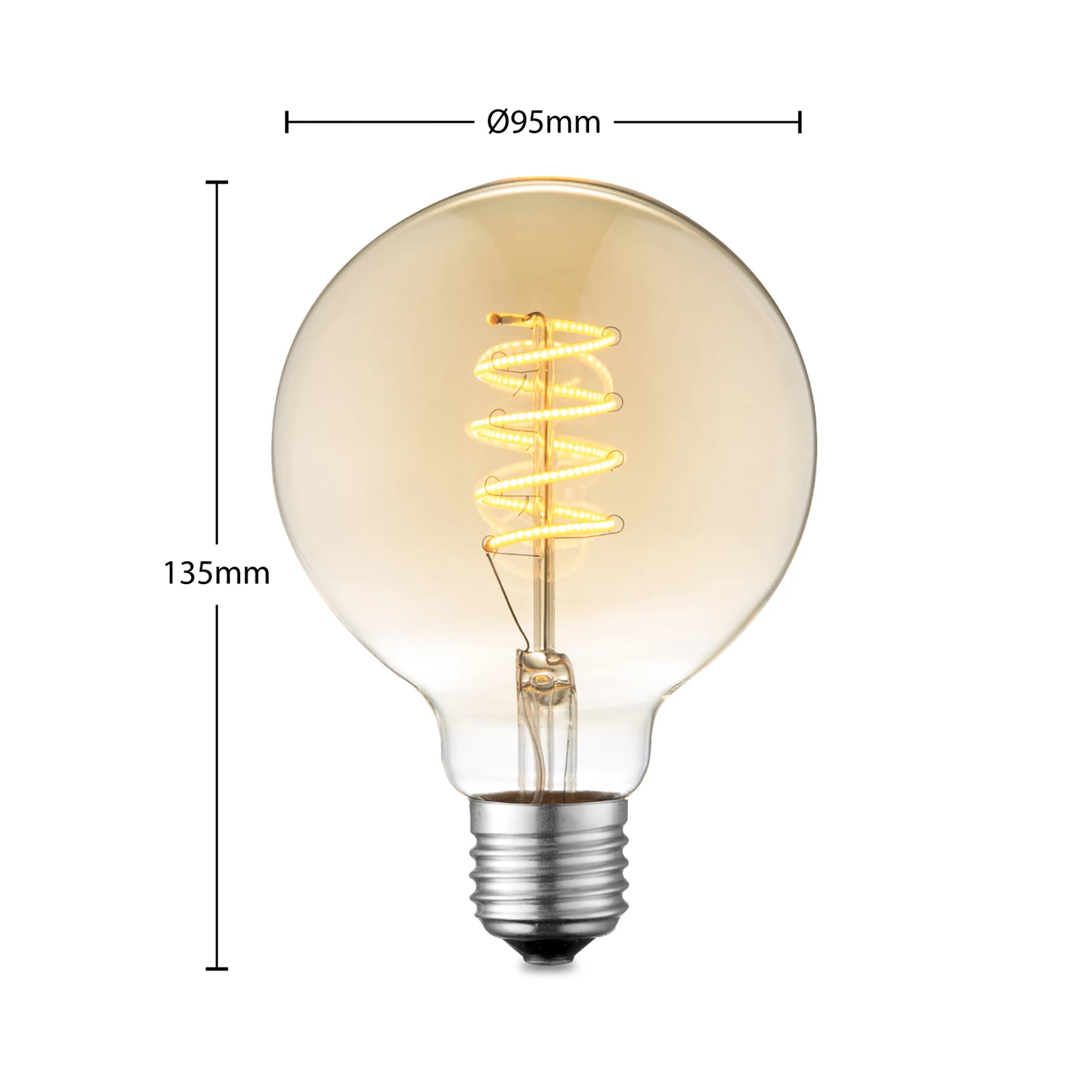 Lucande LED-pære E27 G95 4 W 1.800 K Dæmp, Ravgul