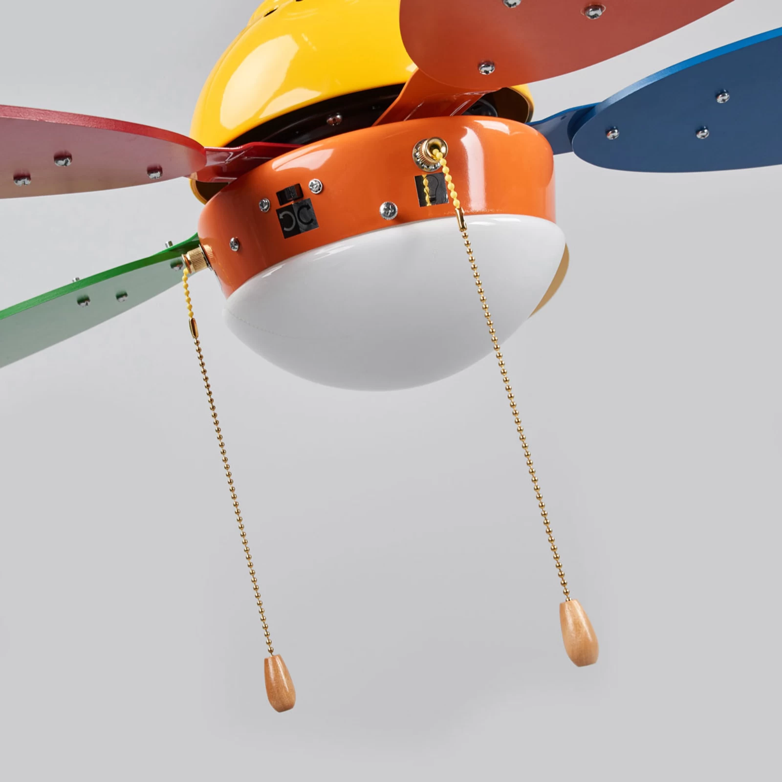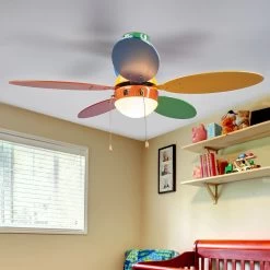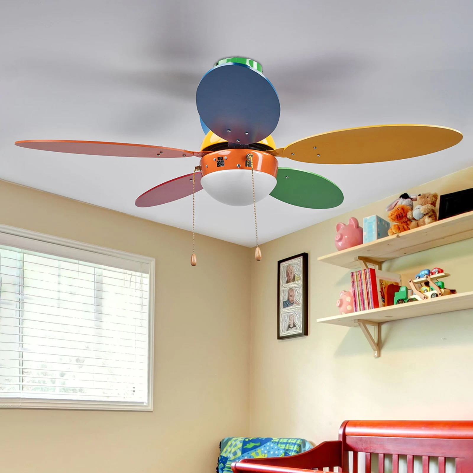 Lysende loftventilator Corinna med fem vinger i forskellige farver – ideel til børneværelser