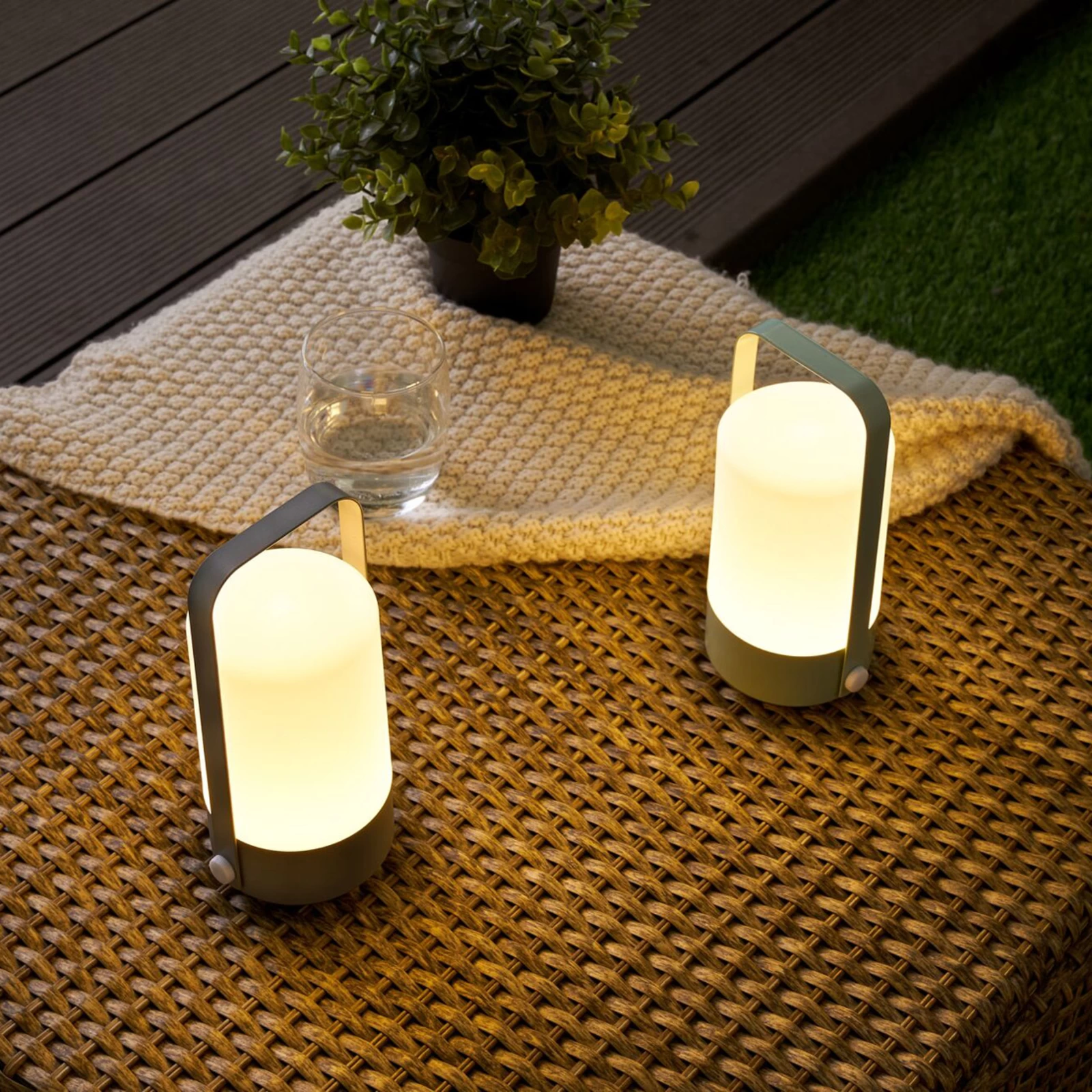 LED dekorativ lanterne Mobile Charm med batteridrift, til indendørs og udendørs brug, dobbeltpakke lysegrøn og grå