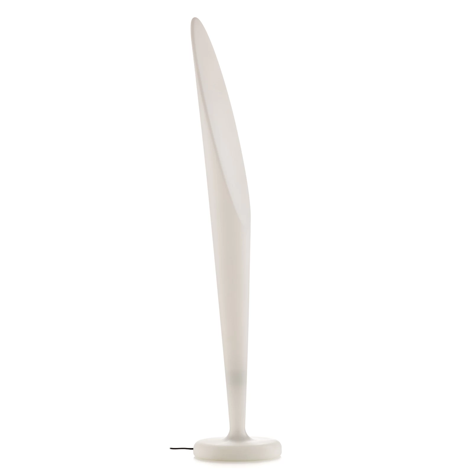 Med designer-standerlampen beriger du dit udendørs område met et flot highlight. Takket være kapslingsklasse IP44 kan den anvendes uden problemer i haven eller på terrassen. Legemet med den usædvanlige form består af plast og spreder et blidt og ensartet lysskær på grund af det hvide, let gennemskinnelige materiale. Leveringen omfatter et 5 m langt kabel med udendørs stik, men omfatter ikke GU10-pærer.