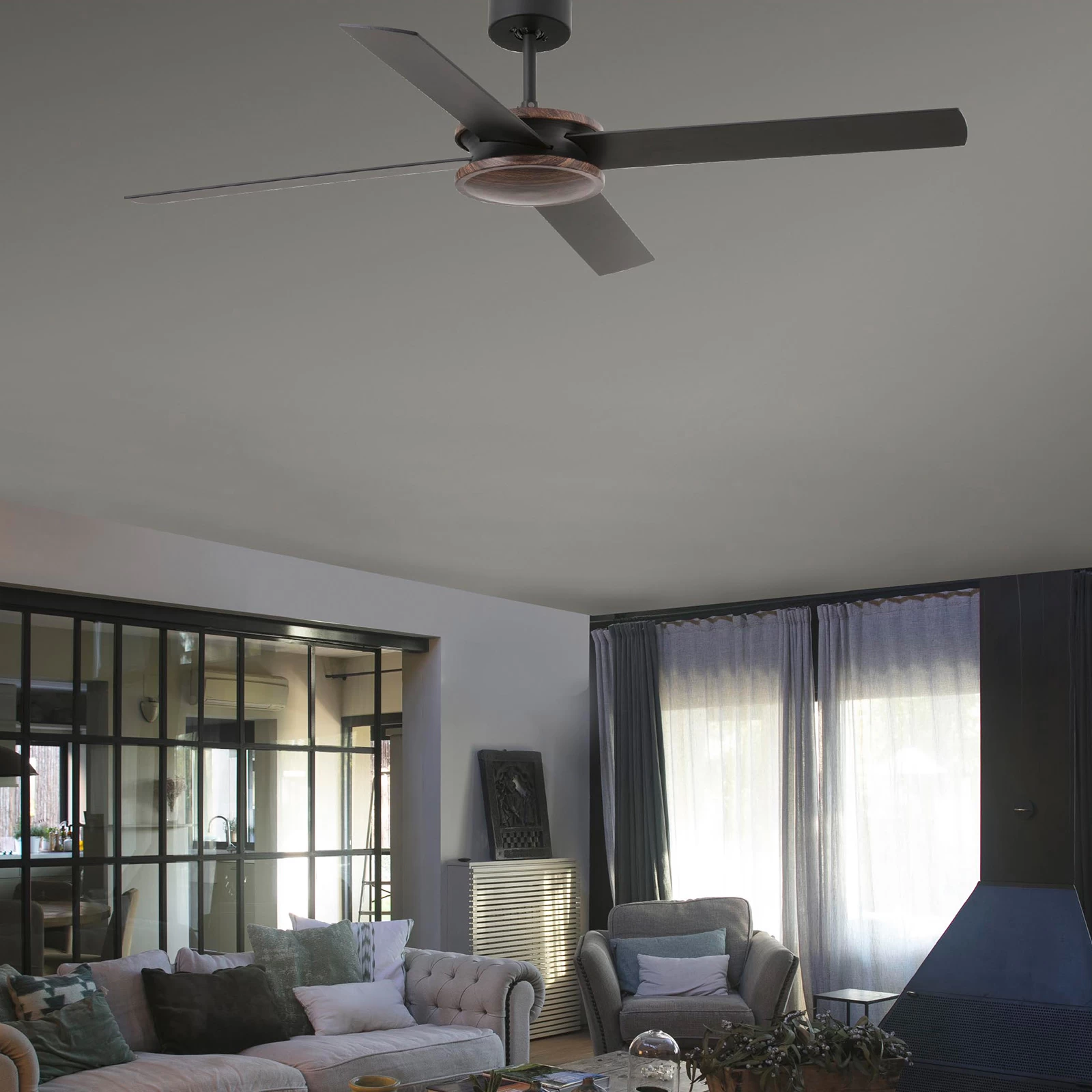 Polea loftventilator med roterende knive i sort og mørkt træ