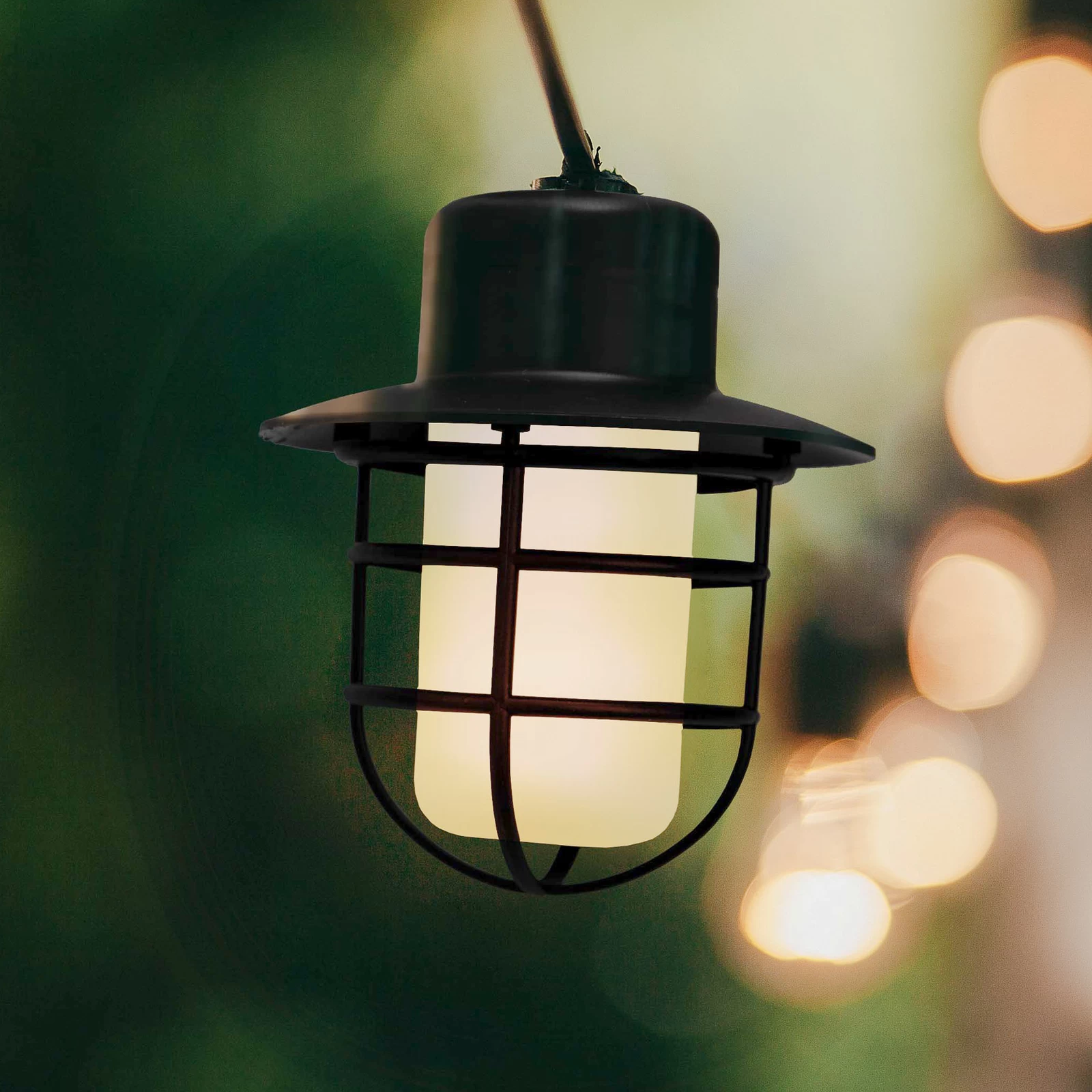LED-solcellelys-kæde med otte flammer RomeLed-solcellelys-kæden Rome er ideel til stemningsfuld belysning af haven. Rome er udstyret med et solcellemodul, som blot sættes ned i jorden ved hjælp af den integrerede jordspyd. Otte små lanterner af metal og plast er forbundet til solpanelet via kablet. De små lanterner er hver især udstyret med en ophængskrog og kan således hænges op i f.eks. en busk. Som lyskilde anvendes varmhvide LED’er med flammeeffekt. I løbet af dagen oplades det indbyggede genopladelige batteri af sollyset. Udstyret med tænd/sluk-knap på solcellemodulet – inkl. genopladeligt batteri AA 1,2 V 400 mAh