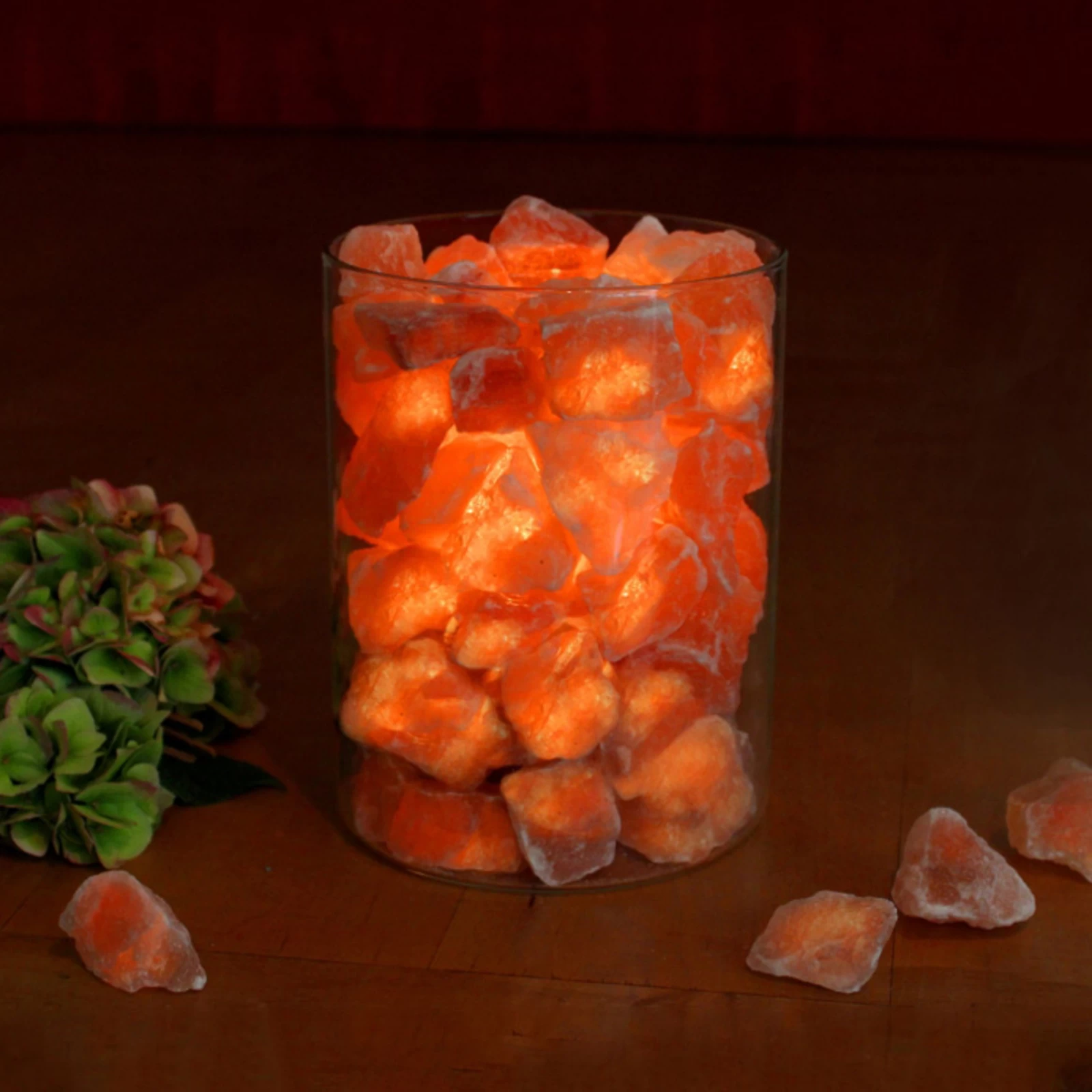 Saltkrystalpejsen i et glas er et meget specielt dekorativt objekt. Det brandsikre glas indeholder et ca. 14 cm højt palmevokslys omgivet af saltkrystalsten i forskellige størrelser. Når stearinlyset tændes, bliver de smukt oplyst.