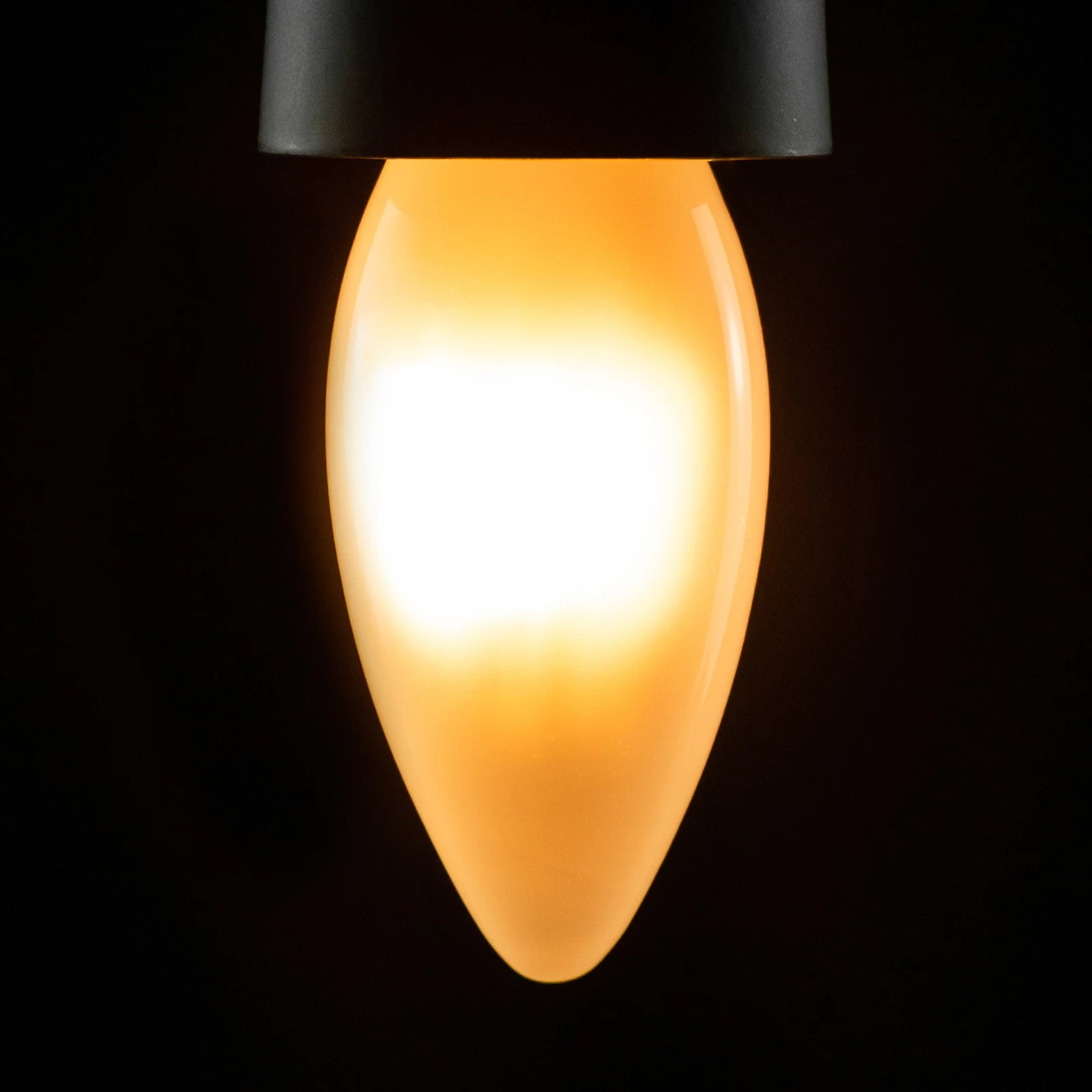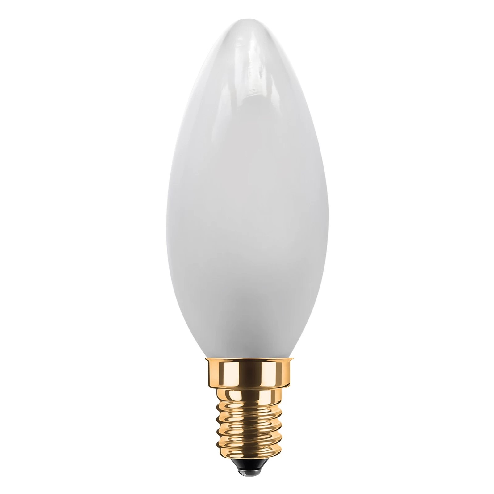 Dette LED-lys til E14-stik er et diskret lys med en meget varm lysfarve. Det matte glas sikrer, at det ikke blænder. Det gør den særlig velegnet til dekorative armaturer, og lysstyrken kan dæmpes eksternt for at skabe en endnu mere behagelig atmosfære.