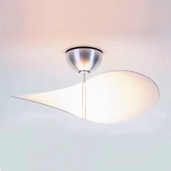 Man kan undre sig over, hvilken fascinerende struktur det er, der oppe i loftet roterer så utroligt elegant og overraskende lydløst på sin egen akse og fylder rummet med en forfriskende brise. Denne struktur kaldes propel og er en fuldstændig nyfortolket og absolut nyskabende version af den konventionelle loftsventilator. Navnet kunne ikke vælges mere passende, fordi det tyske ord “Propeller” har sine rødder i det latinske verbum “propellere”, hvilket betyder noget i retning af “at køre” eller “at køre frem”. Det, der drives her af en motor skjult i baldakin, er en ventilator, der er præget af abstraktion og kunstnerisk tænkning. Du vil dog forgæves se efter roterende knive med propel. Det er snarere en abstrakt skulptur, der er belyst indefra, som ved elegant at dreje rundt om sig selv tegner en fascinerende form i luften. Hvis propellen stopper, kan du se den unikke fejende form af den stofdækkede blæser, som ikke kan være glattere og blidere, når den er i bevægelse.