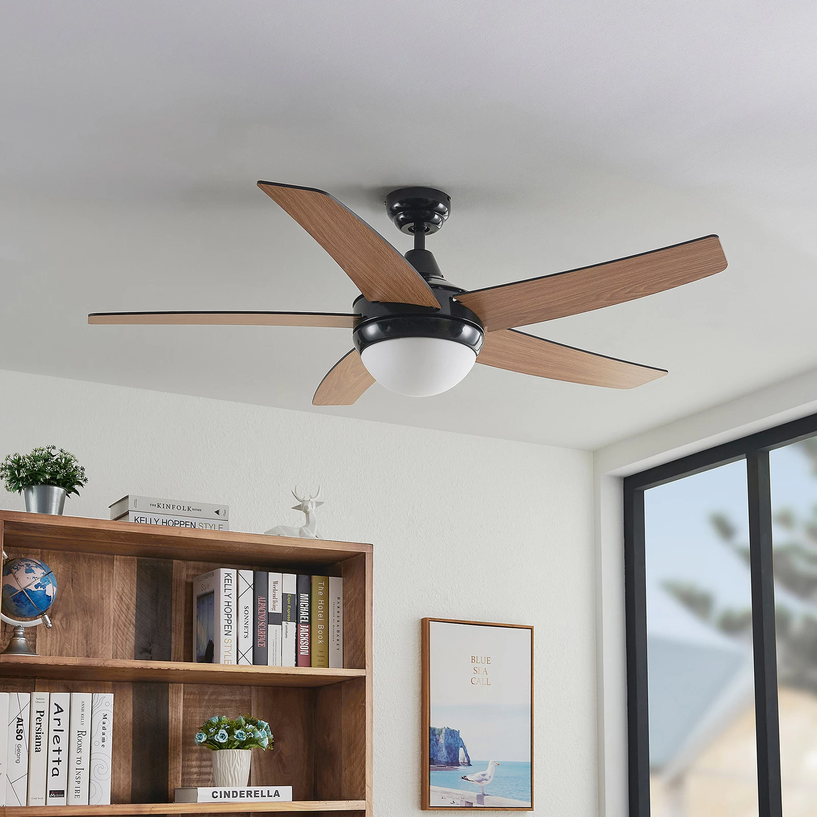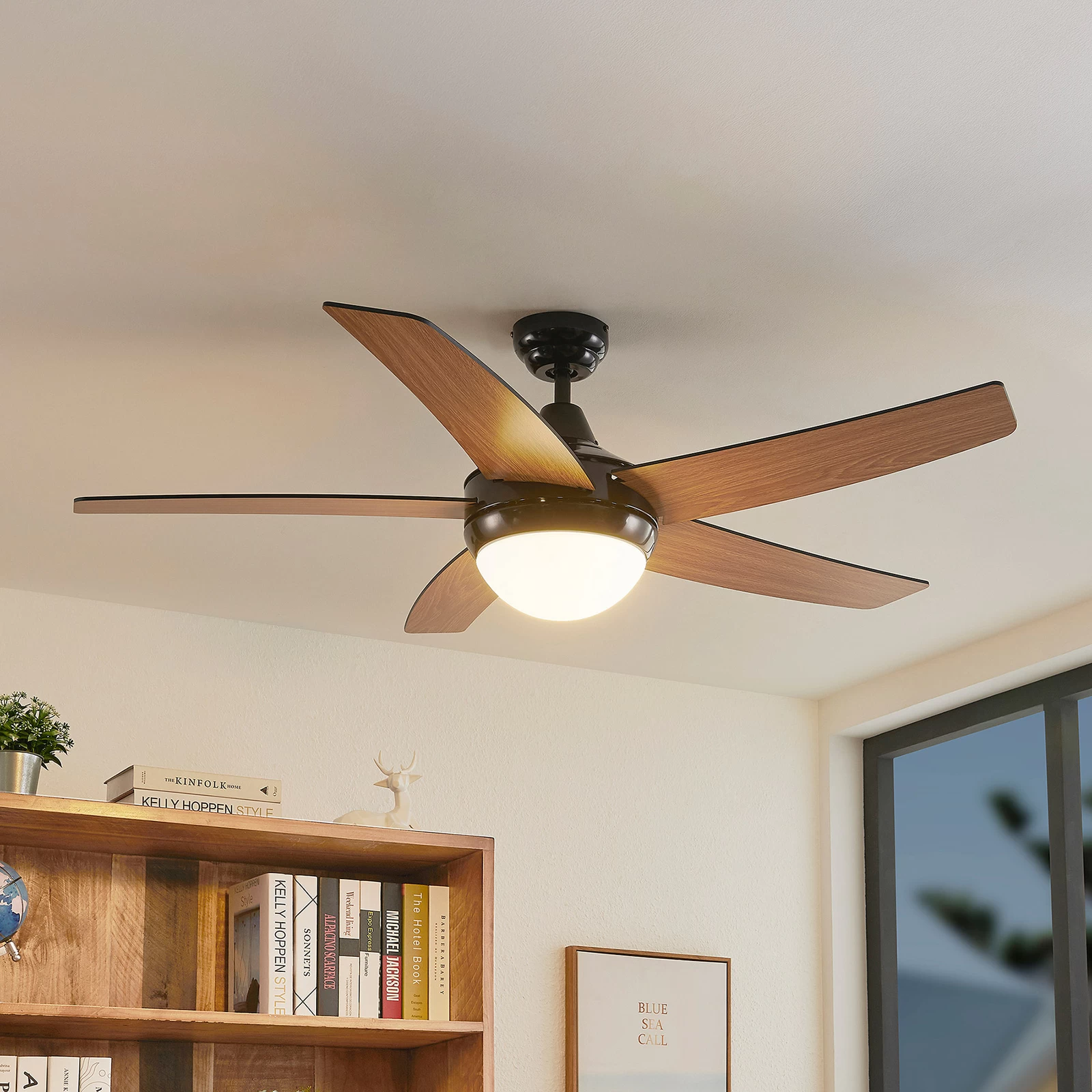 Auraya loftventilator i stål og egetræ med fjernbetjening