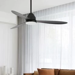LED-loftventilatoren Harisa er designorienteret og scorer også med sin funktionalitet. Huset er fremstillet af jern og aluminium, mens de tre blade er fremstillet af polycarbonat. Ventilatoren har fast installerede lysdioder, der udsender varmt hvidt lys.