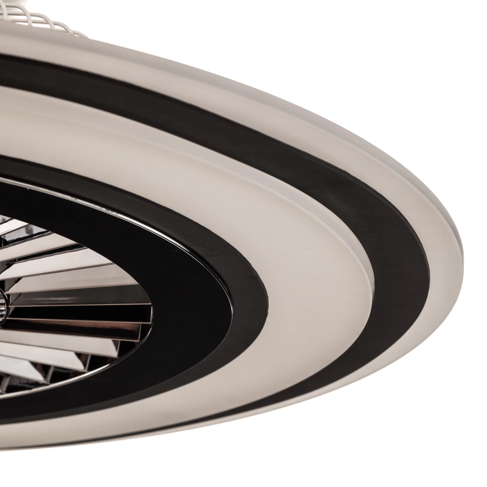 Rund LED-loftventilator Leoman med CCT-farveskift, dæmpbarLeoman er en LED-drevet loftventilator, der kan lyse op og cirkulere luften. Det er således en multifunktionel enhed til boligområdet. Lysstyrken og lysfarven kan også justeres via fjernbetjeningen, og hastigheden kan reguleres i tre trin. Formen er rund og moderne. FunktionerDenne ventilator bringer frisk luft ind i stuen og giver samtidig lys, som ikke kun kan justeres i lysstyrke, men også i lysfarve via den medfølgende fjernbetjening. Desuden tjener fjernbetjeningen til at regulere hastigheden i tre trin og aktiverer en timerfunktion eller natlyset, hvis det er nødvendigt. Tekniske data- tre hastighedsniveauer- med fjernbetjening- dæmpbar- CCT-farveskift- timer- natlysfunktion- effekt: 40/37/31 watt- hastighed: 1.070/920/670 omdrejninger pr. minut- maksimal luftmængde (Q): 35 m³/min- ventilatorens indgangseffekt (P): 40 W- driftsværdi (SV): 0,7 (m³/min)/W (IEC60879:1986)- standby-forbrug (PSB): 0,49 W- ventilatorens lydeffektniveau (LW): 58 dB (A)- maksimal lufthastighed (c): 2,8 m/s