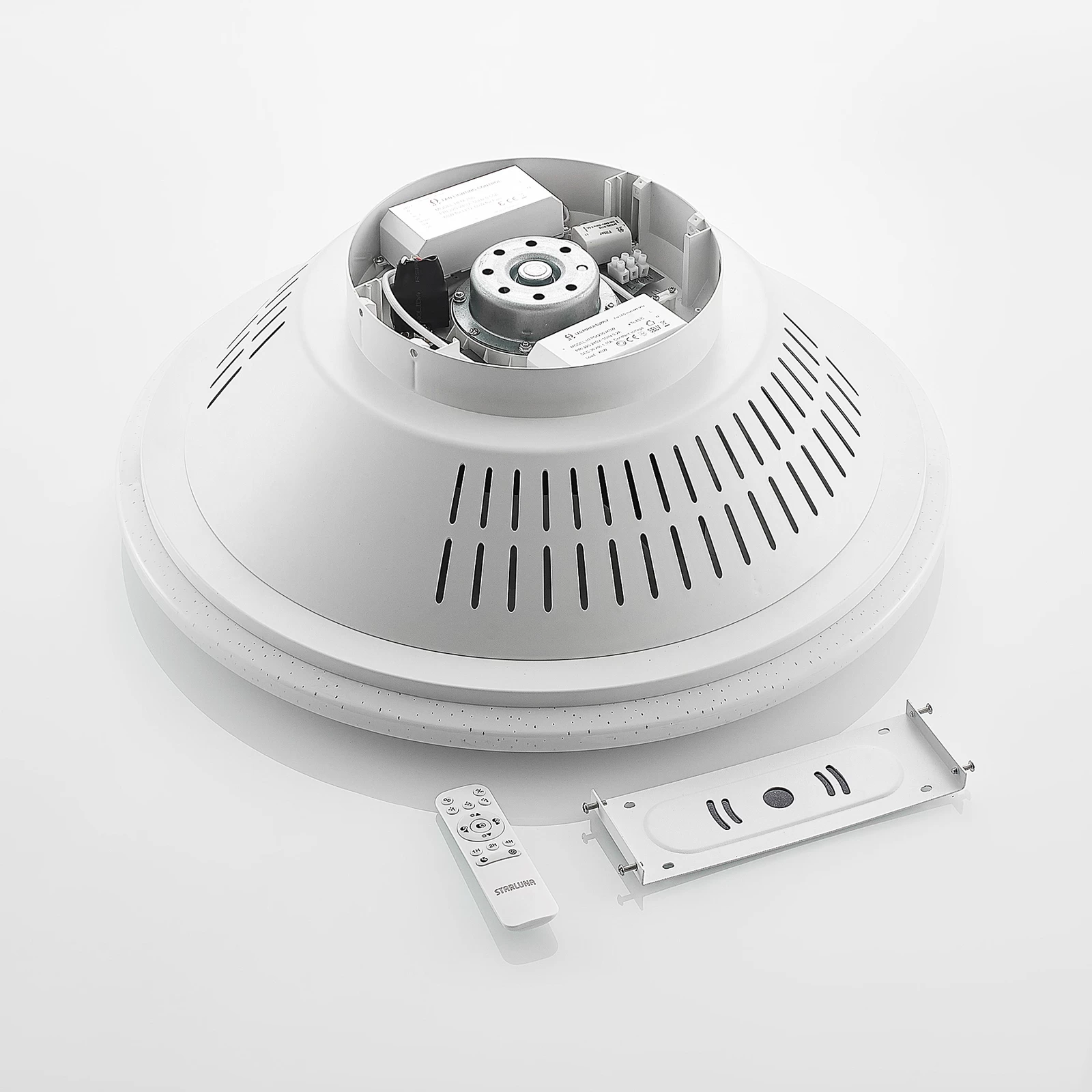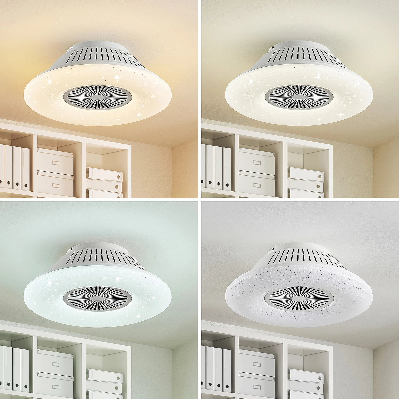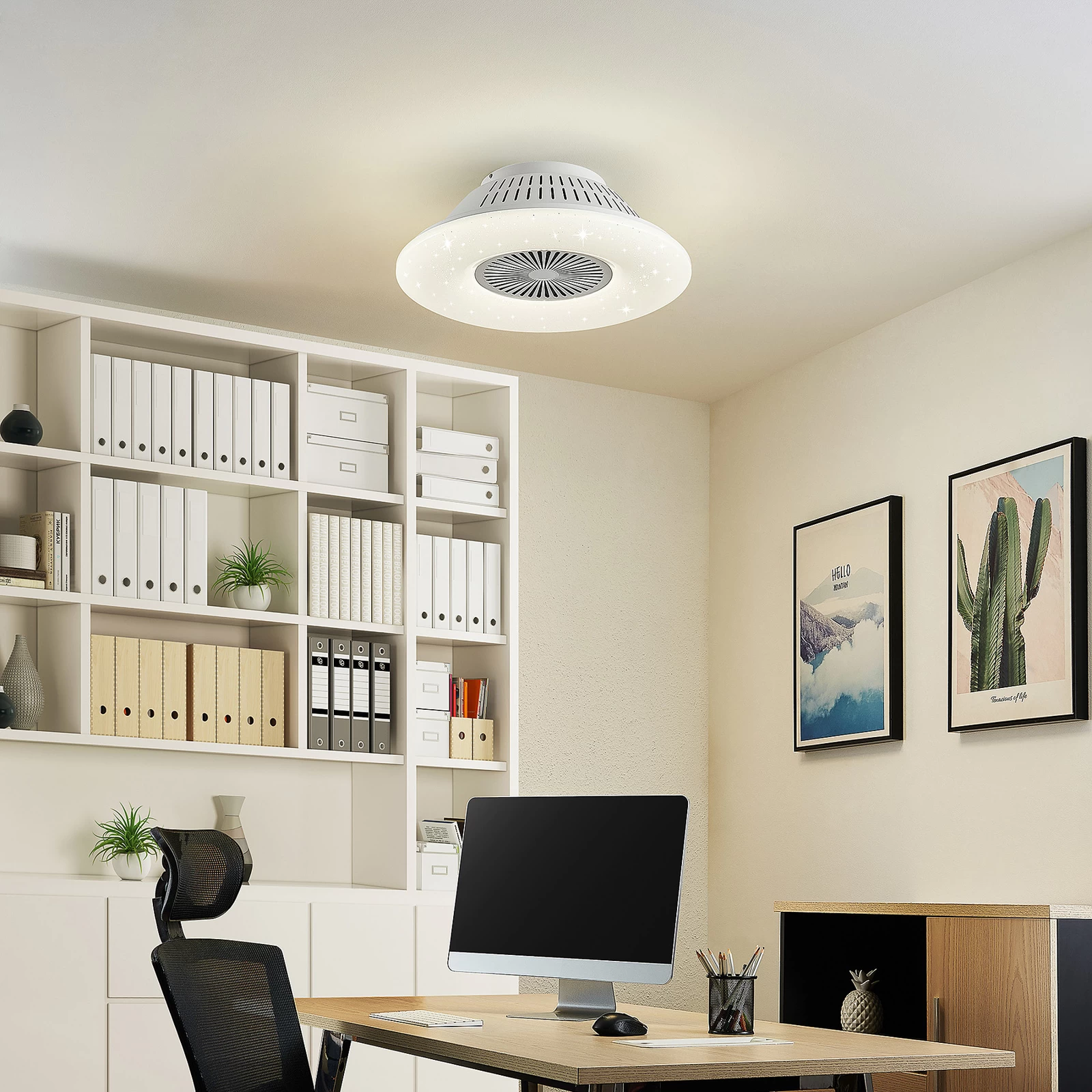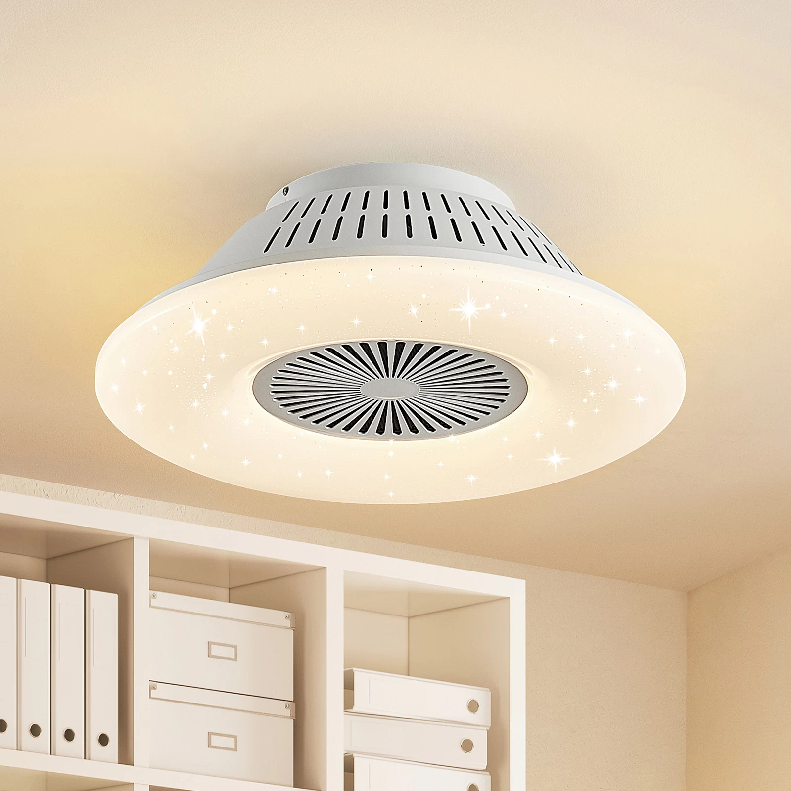 Hvid LED-loftventilator Myrtle med luftrensningsfunktion