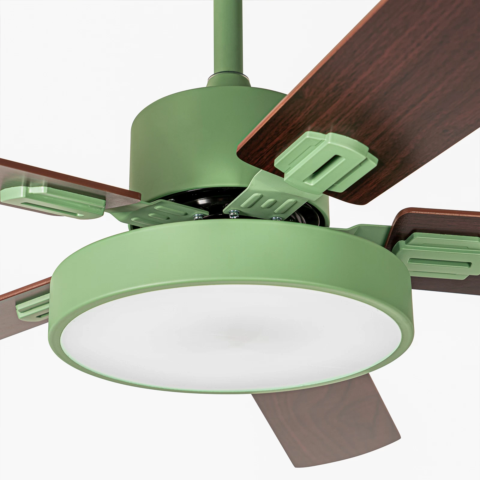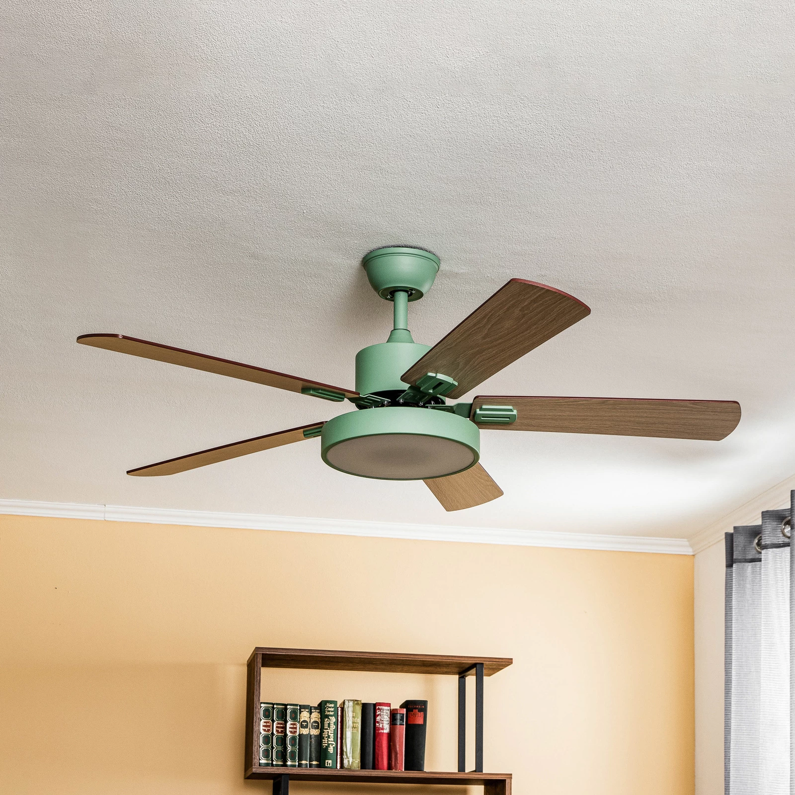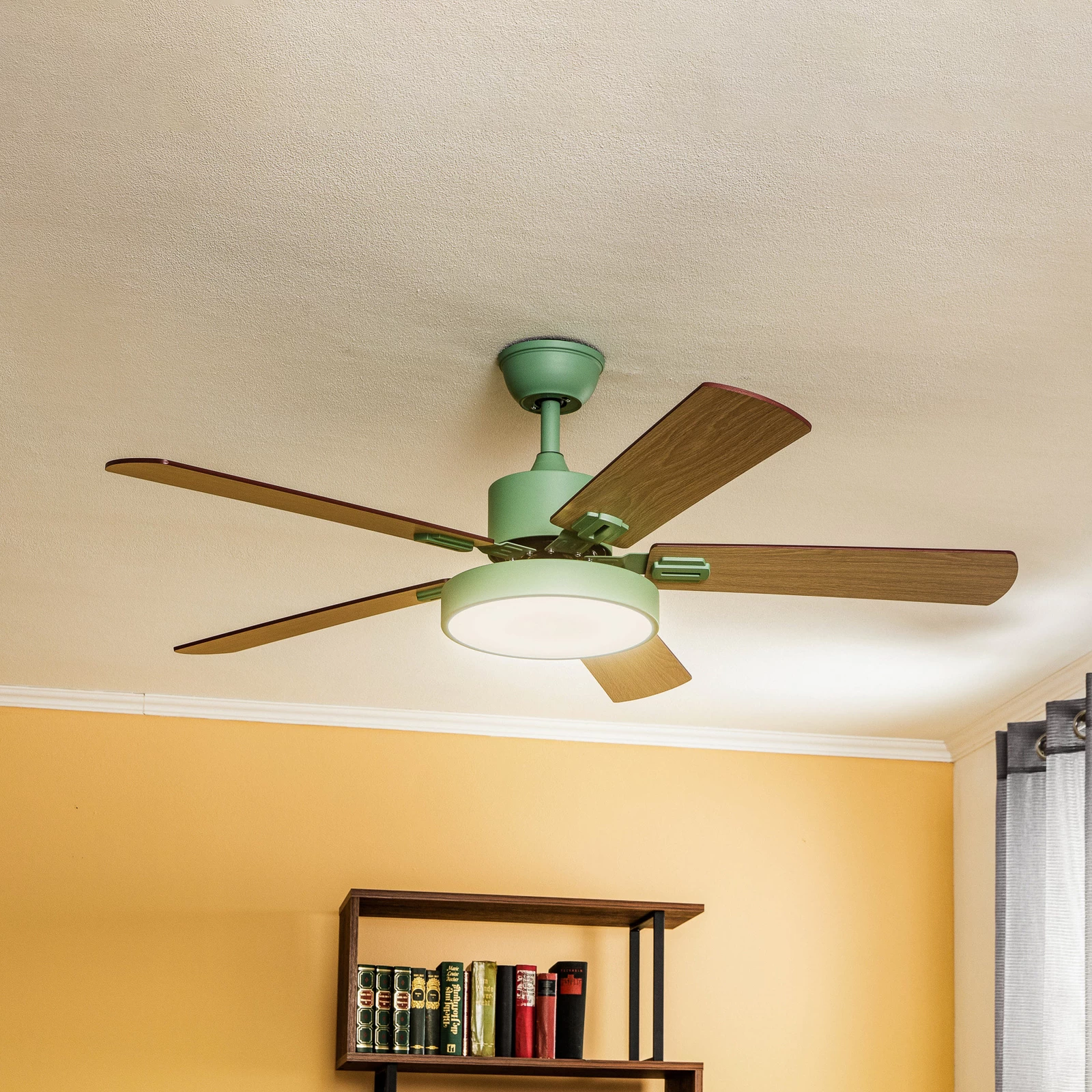 LED-loftventilatoren Rivando er perfekt egnet til rum med en størrelse på op til 18 m² og har mange funktioner. Dens kabinet er fremstillet af jern og dækket med en slående grøn finish. De fem blade er lavet af krydsfiner og giver en flot visuel kontrast til metalhuset.