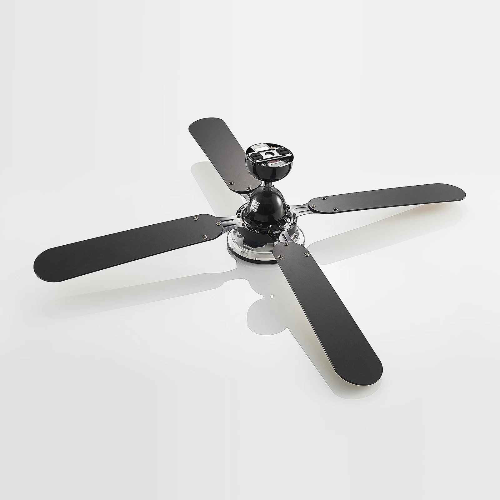 Rotationen og lyset på Tedric loftventilatoren styres ved hjælp af en fjernbetjening. Det er muligt at skifte mellem fremad og baglæns bevægelse ved hjælp af en kontakt på huset Tekniske data:Motorhastighed: 180/100/56 omdrejninger pr. minutEffekt: 54/16/7,2 wattMaximum luftstrøm: 2,17 m³/minFan input effekt (P): 54 WServiceværdi (SV): 2,17 (m³/min)/W (IEC60879:1986)Standby strømforbrug (PSB): 0,5 WMaximal lufthastighed (c): 1,61 meter/sekLuftenergi niveau (LW): 48,9 dB (A)