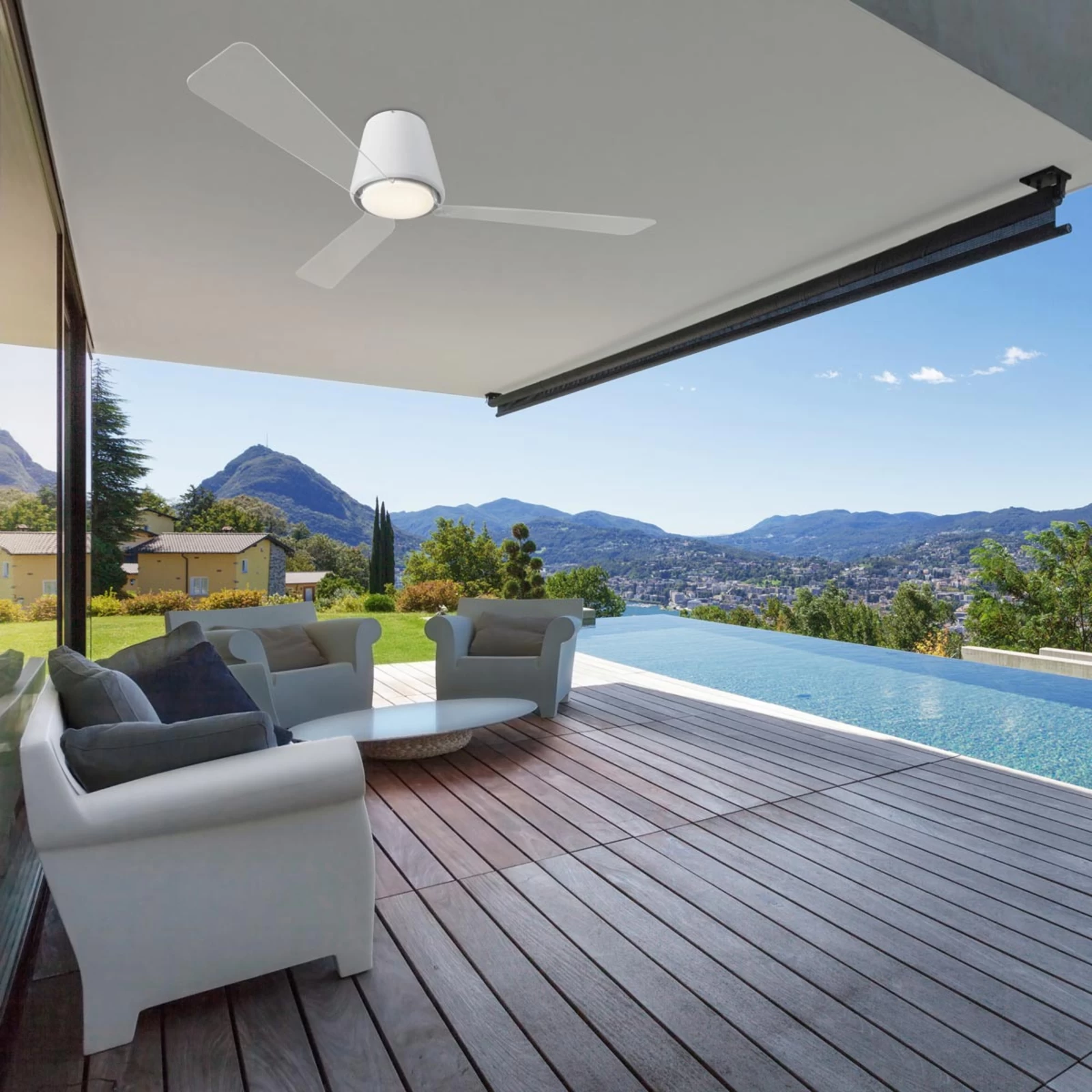Garbí er en loftsventilator, som ikke kun gør indtryk med sit moderne look, men også med sin funktionalitet. Den er udrustet med energieffektive LED’er, som sørger for en behagelig, varmhvid lysstemning i rummet. De tre rotorblade er formet af klar akryl og fremstår næsten helt usynlig op under loftet. I kombination med det hvide stel virker den særdeles harmonisk og moderne. Den ydelsesstærke DC-motor er meget støjsvag og kan indstilles på fem forskellige niveauer. Den og yderligere funktioner kan bekvemt tages i brug med den medfølgende fjernbetjening.