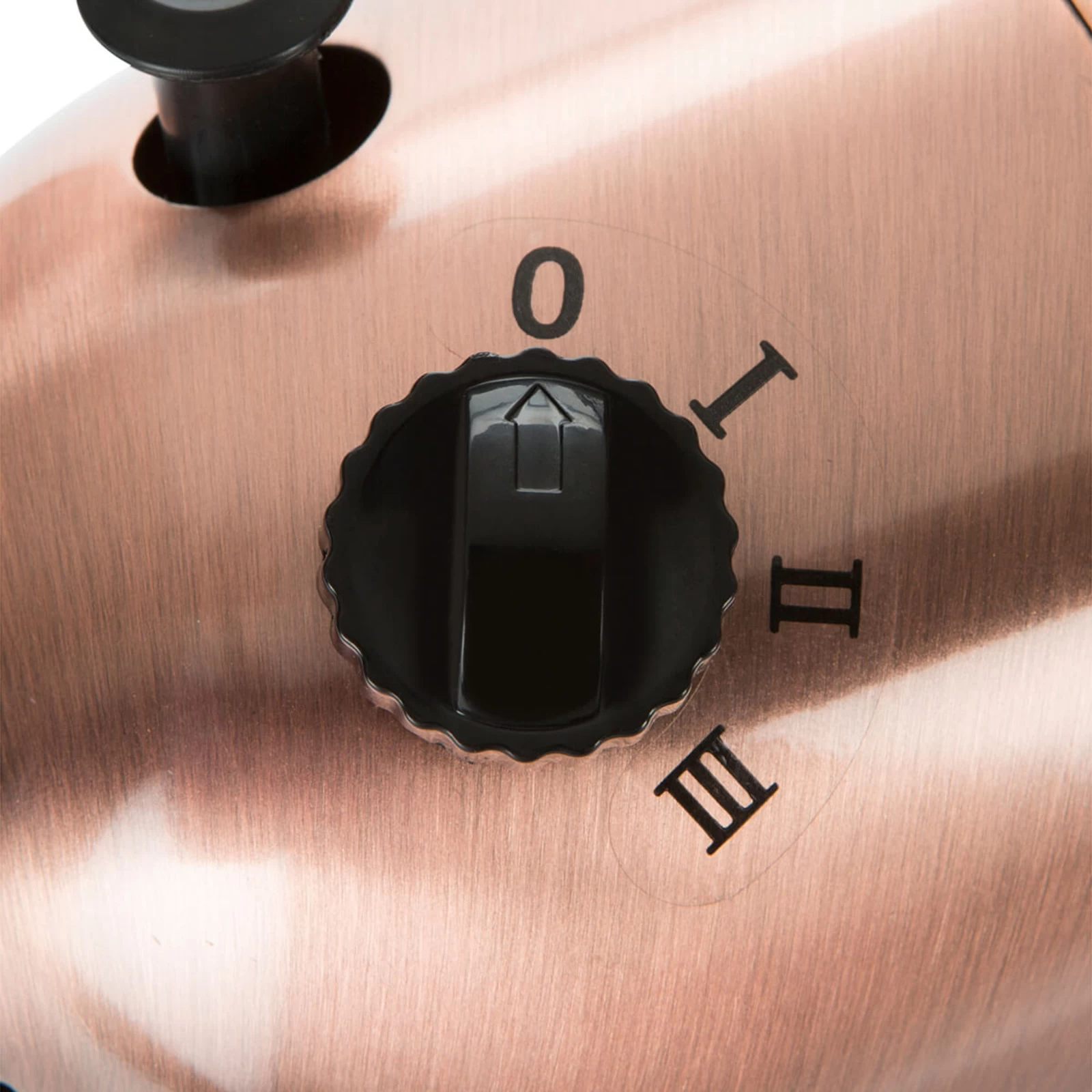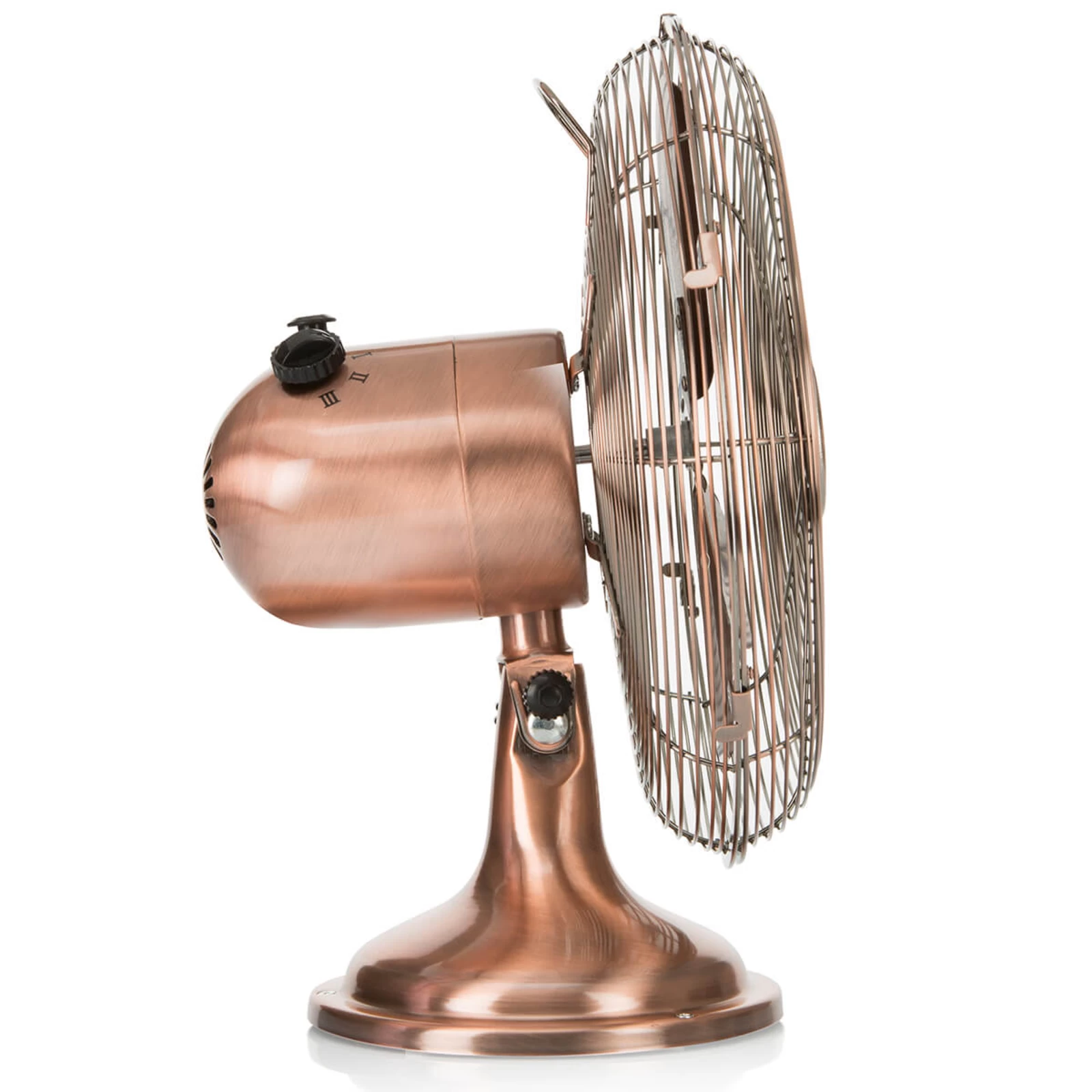 Visuelt ligner bordventilatoren VE5970, der skinner i en varm kobberfarvet tone, et levn fra en svunden tid, men funktionelt opfylder den ubesværet moderne krav.