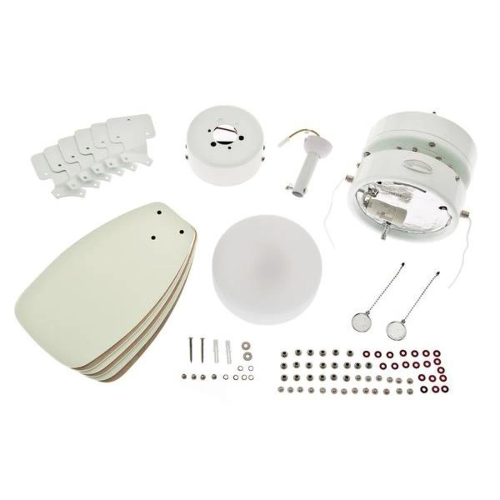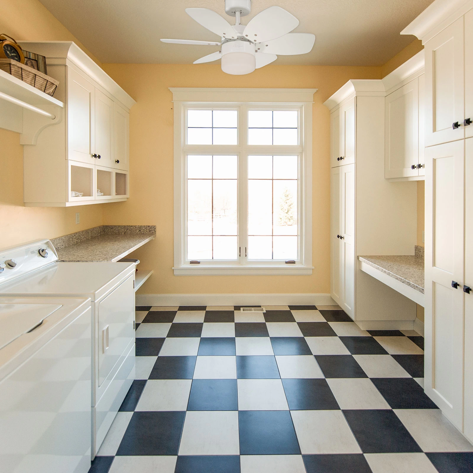 Også i et lille lokale bør der om sommeren såvel som om vinteren herske behageligt tempererede luftforhold. Med Flora Royale er det ikke noget problem: Loftventilatoren med seks vinger sørger for en adækvat luftcirkulation, som om vinteren også medfører en besparelse på varmeudgifterne. Den integrerede opalglaslampe afgiver derudover også den nødvendige oplysning af rummet. Flora Royale kan yderligere udstyres med en fjernbetjening (kan bestilles under tilbehør). En forlængerstang er inklusiv.