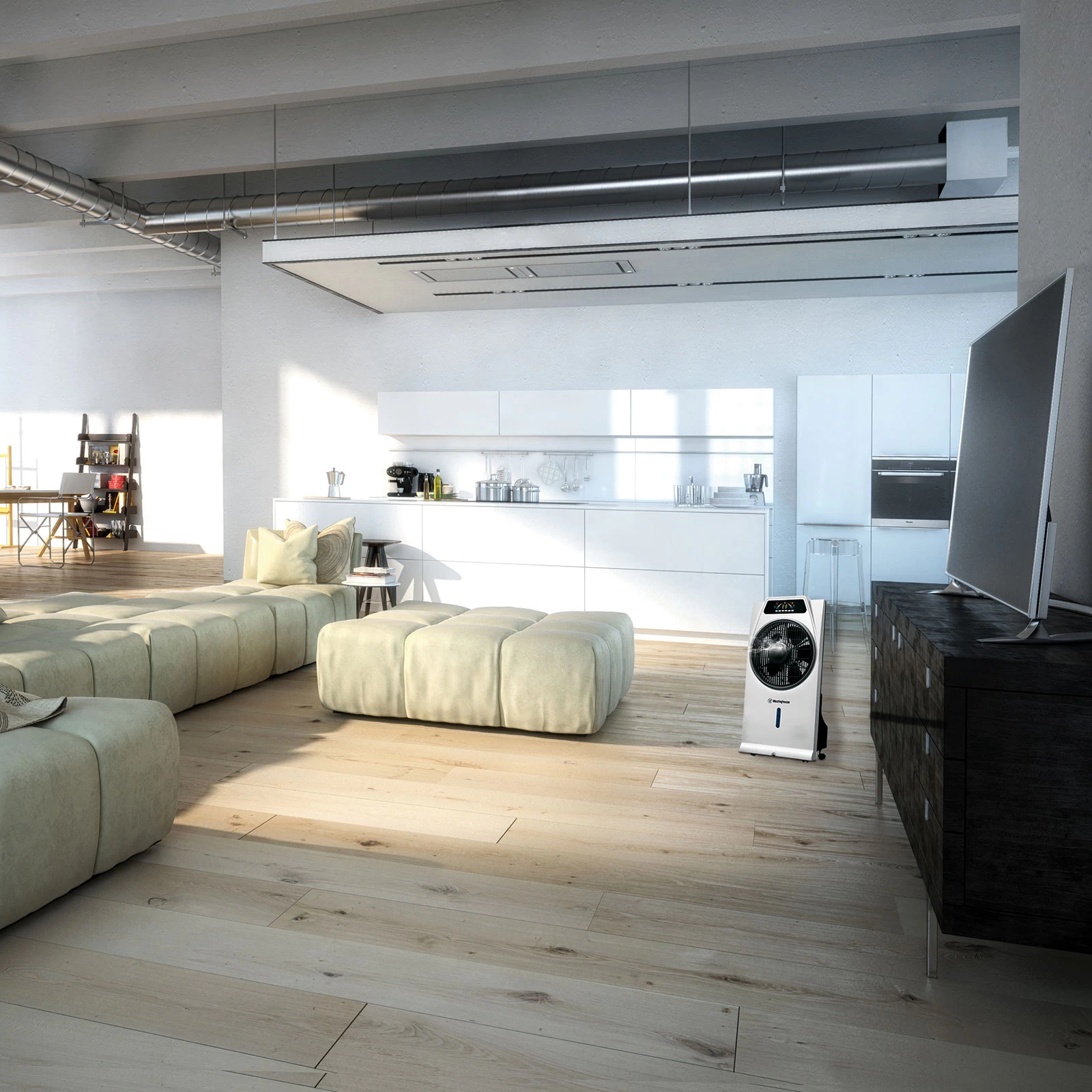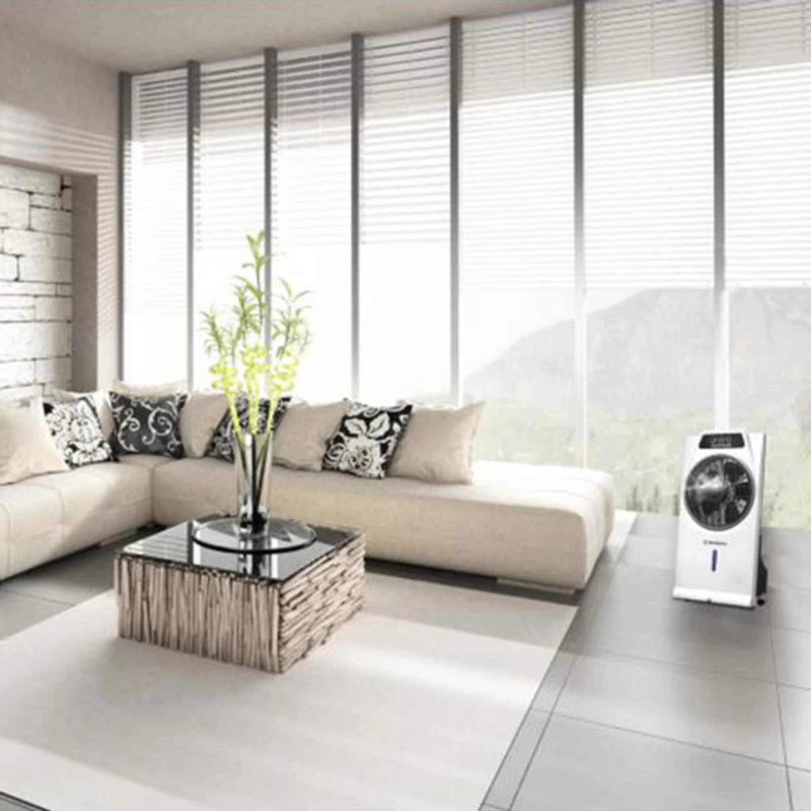 Kraftfuld gulvventilator Cascata med integreret luftfugter