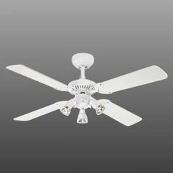 På den ene side er de fire vinger på Princess Euro loftventilator i strålende hvid, på den anden side i lys bøg. Men Princess Euro sikrer ikke kun optimal luftopfriskning og cirkulation hele året rundt, den overtager også funktionen som loftsbelysning. Der medfølger en forlængerstang.